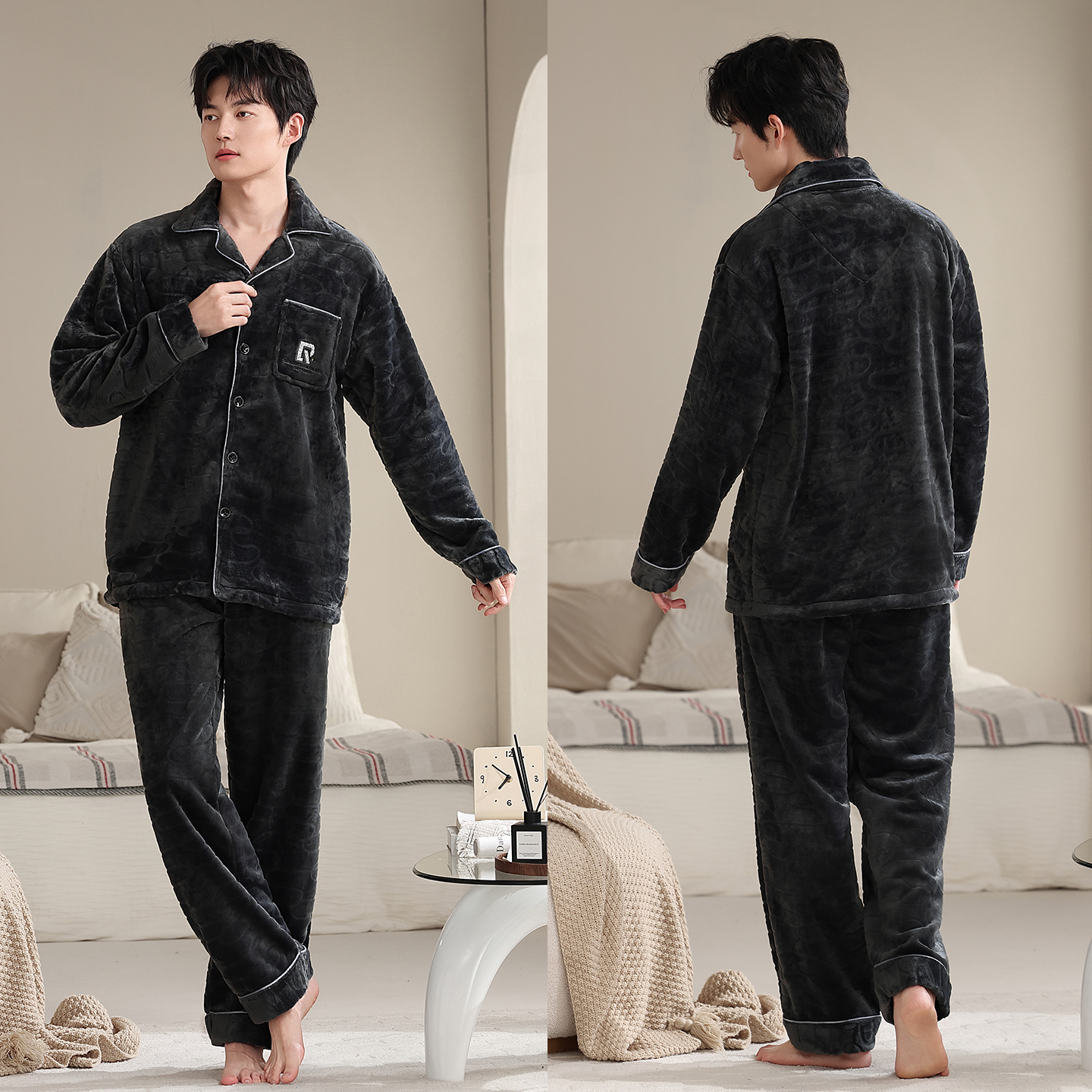 家居服外穿春秋套装 睡衣男士 珊瑚绒大码 海岛绒加厚加绒长袖 秋冬款