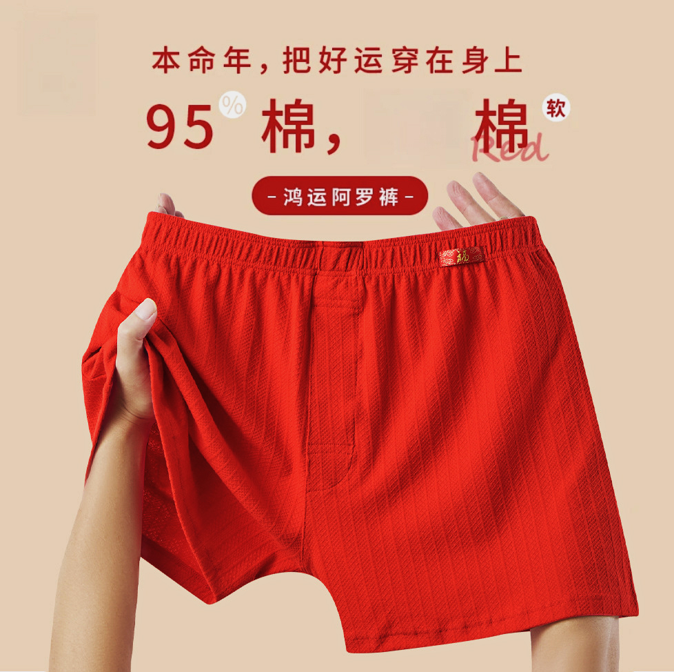 宽松居家休闲平角裤 大红色阿罗裤 棉本命年新年属马加大码 内裤 男士