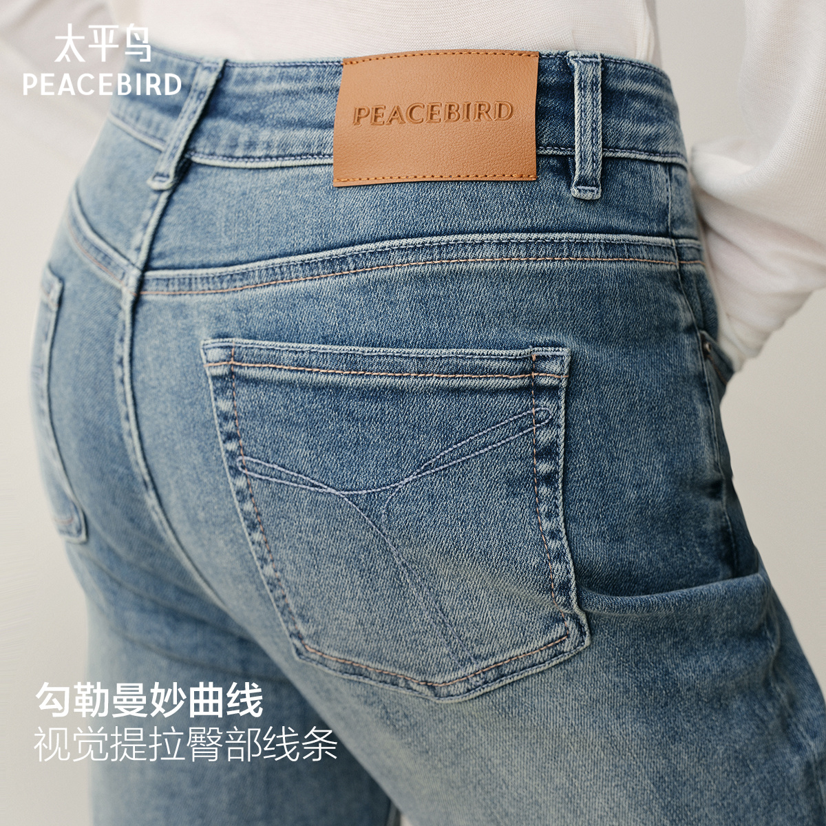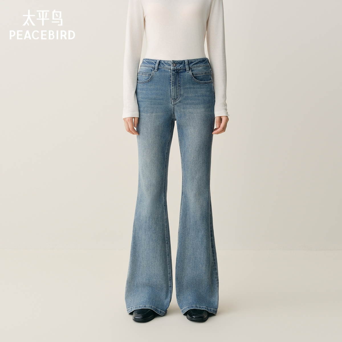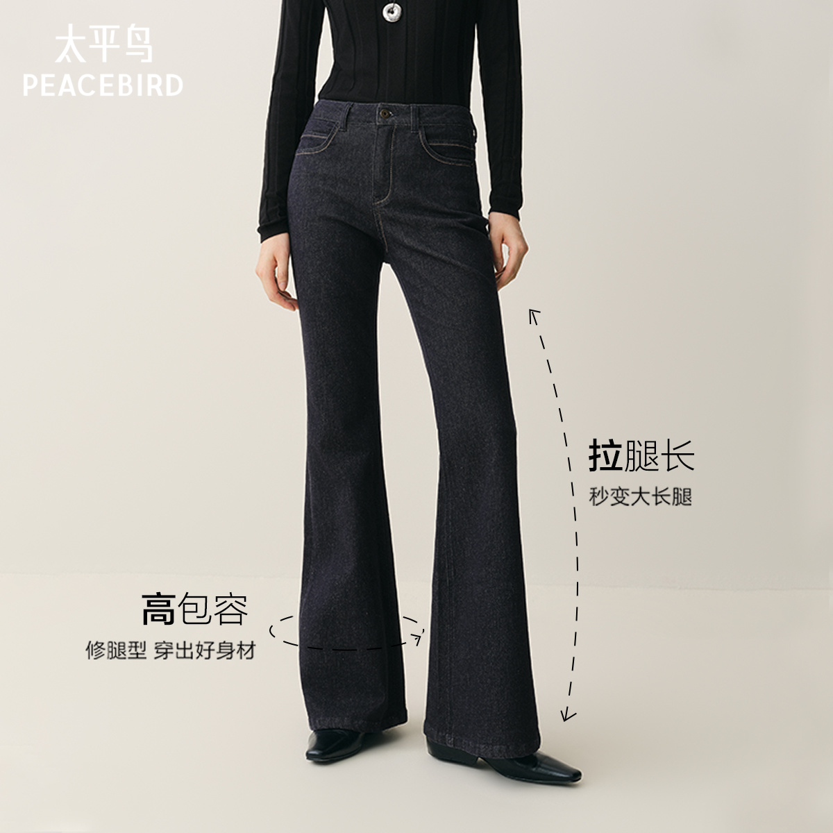小个子马蹄喇叭裤 修身 子 女2025年春秋新款 蓝色高腰弹力微喇牛仔裤