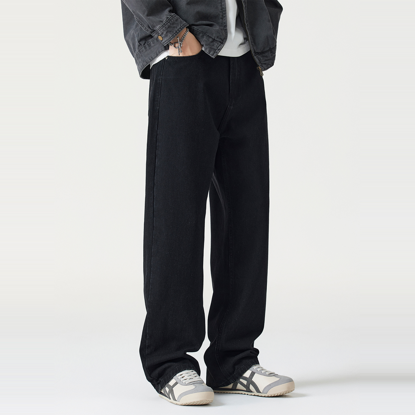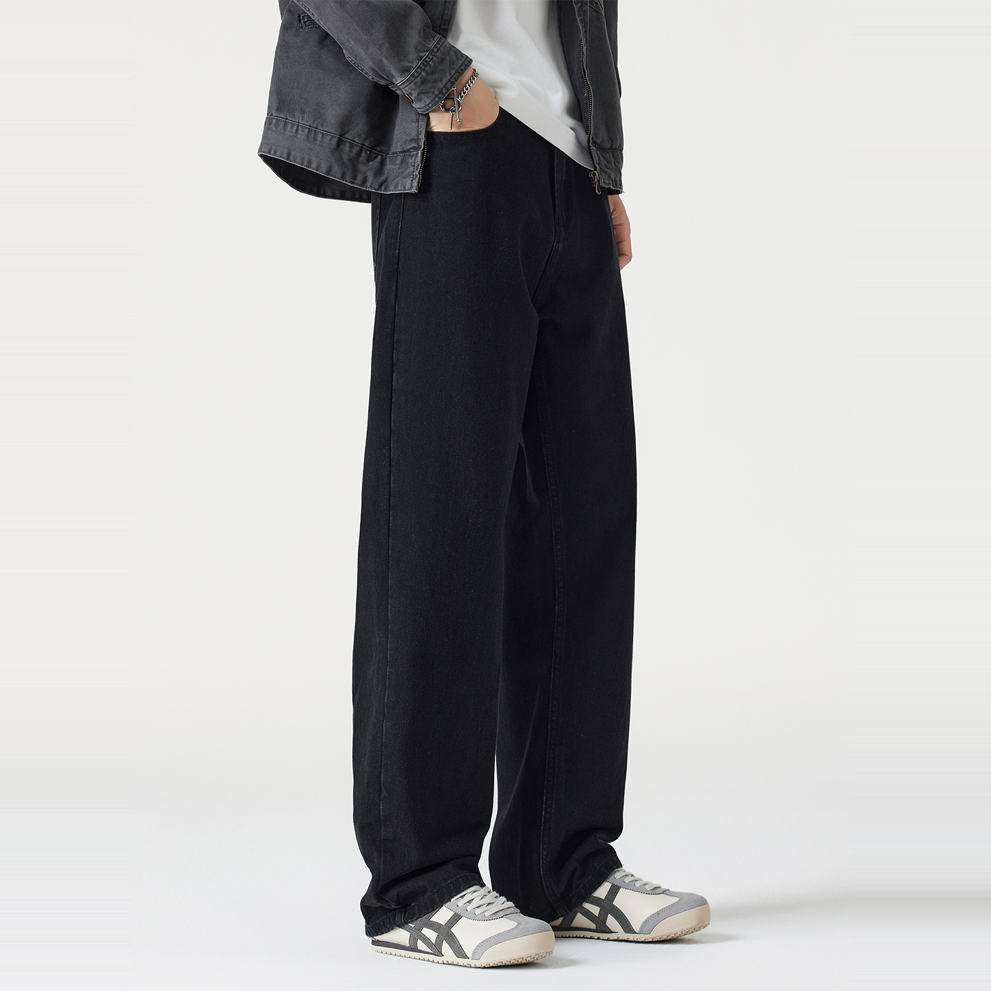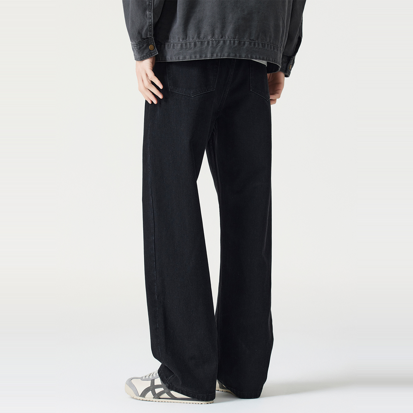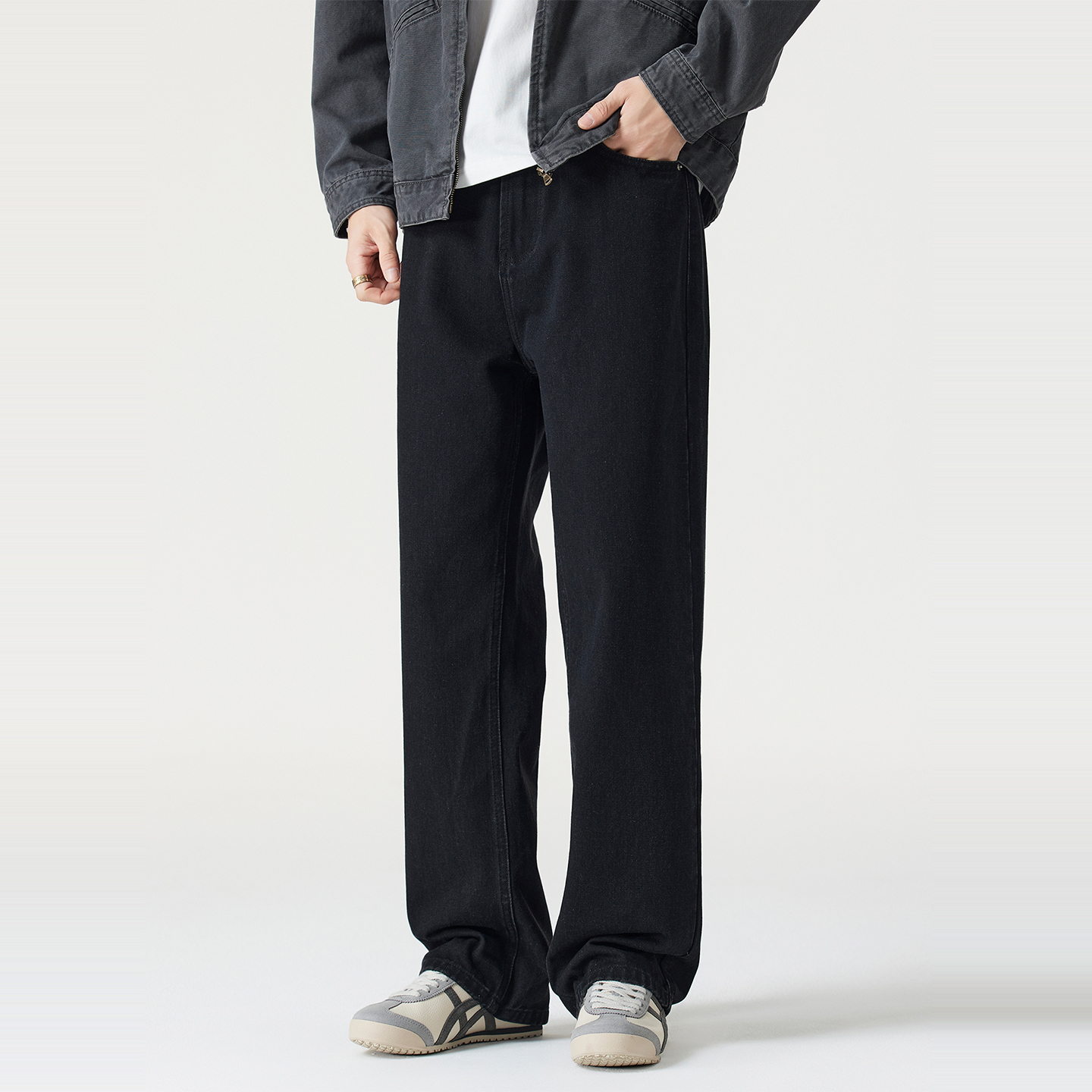 男士 Kuvine秋季 复古百搭宽松直筒cleanfit水洗黑色牛仔裤 美式 新款