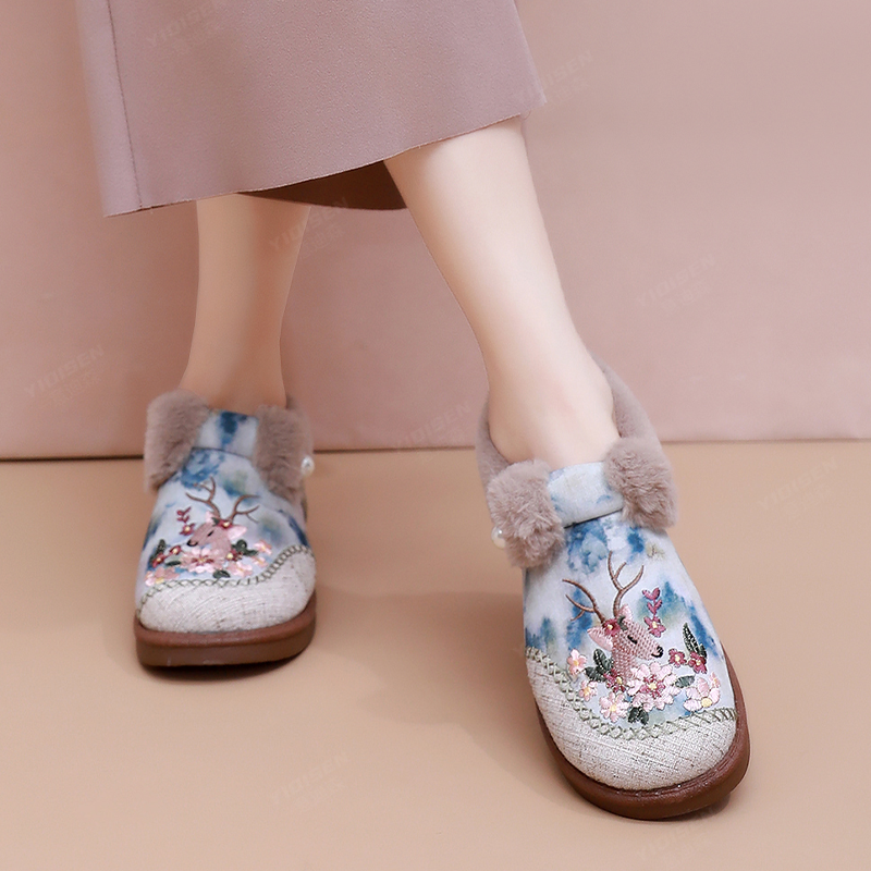 新款 老北京布鞋 加绒加厚保暖女士棉鞋 国风绣花妈妈鞋 新中式 冬季