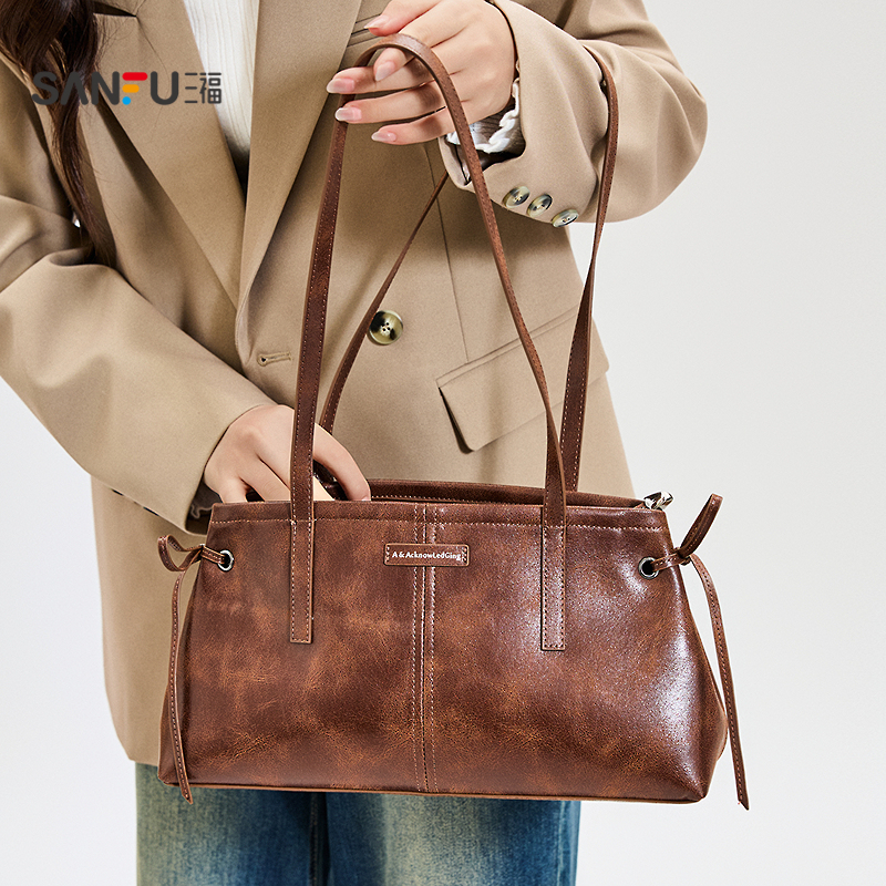 三福挎包秋季 慵懒慢人复古擦色医生包腋下包休闲女包509937