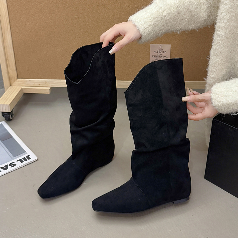 巨好看 不过膝小个子高筒骑士靴子 平底内增高堆堆长靴女2025新款