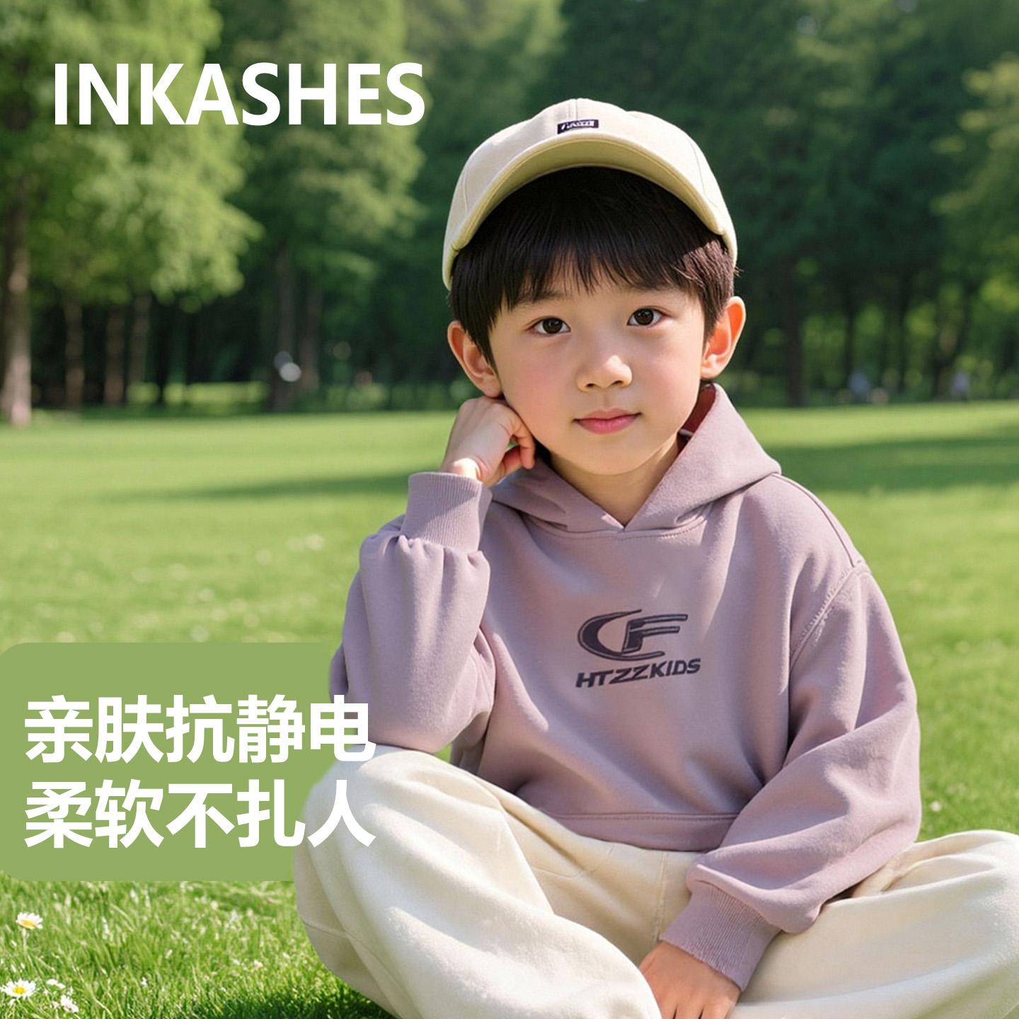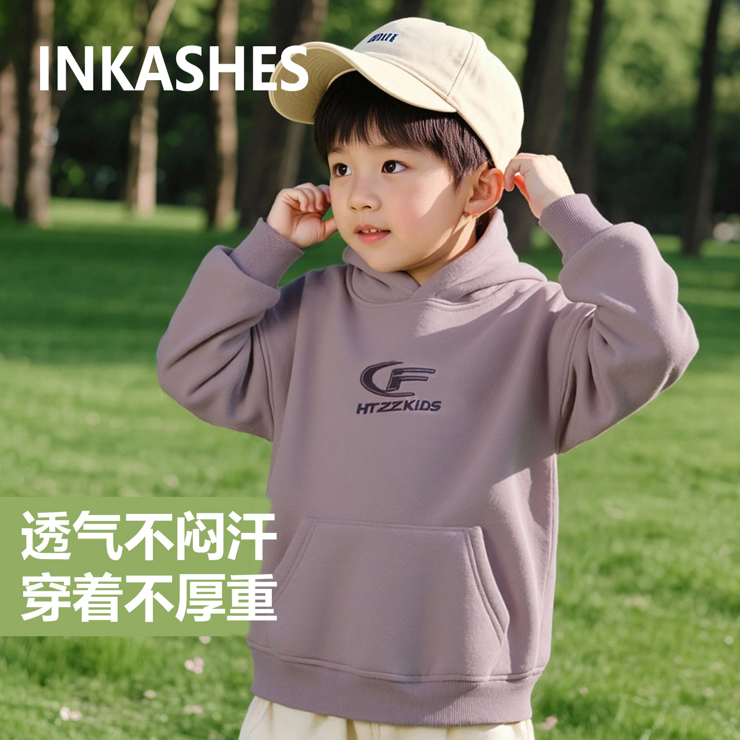 套头装 长袖 儿童加厚上衣 2025新款 INKASHES男童加绒连帽卫衣秋冬季
