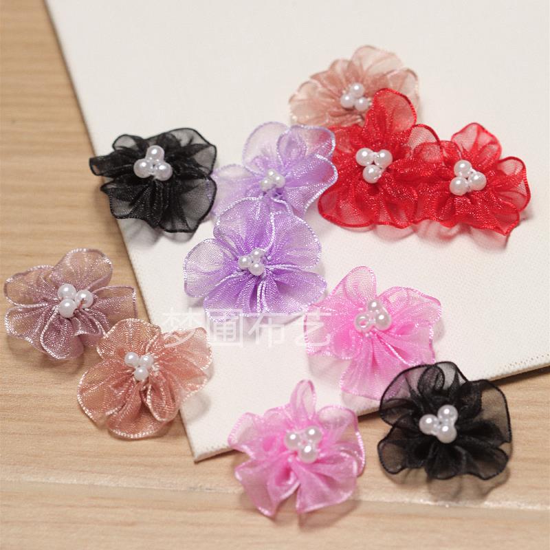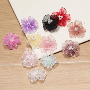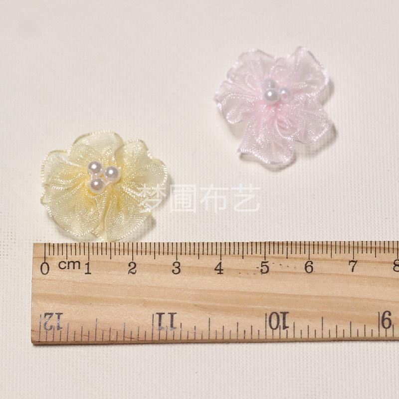 花DIY手工配饰 辅料精致头胸鞋 直径3厘米 服装 五瓣雪纱小珠花朵