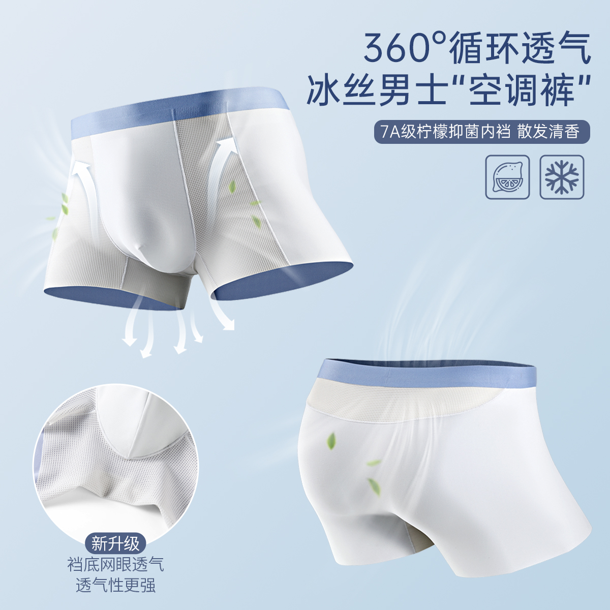 平角裤 男式 裤 内裤 衩青少年运动四角短裤 冰丝抗菌男士 头男生裤 男款