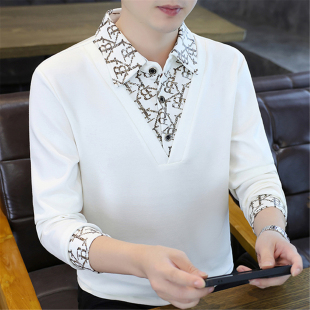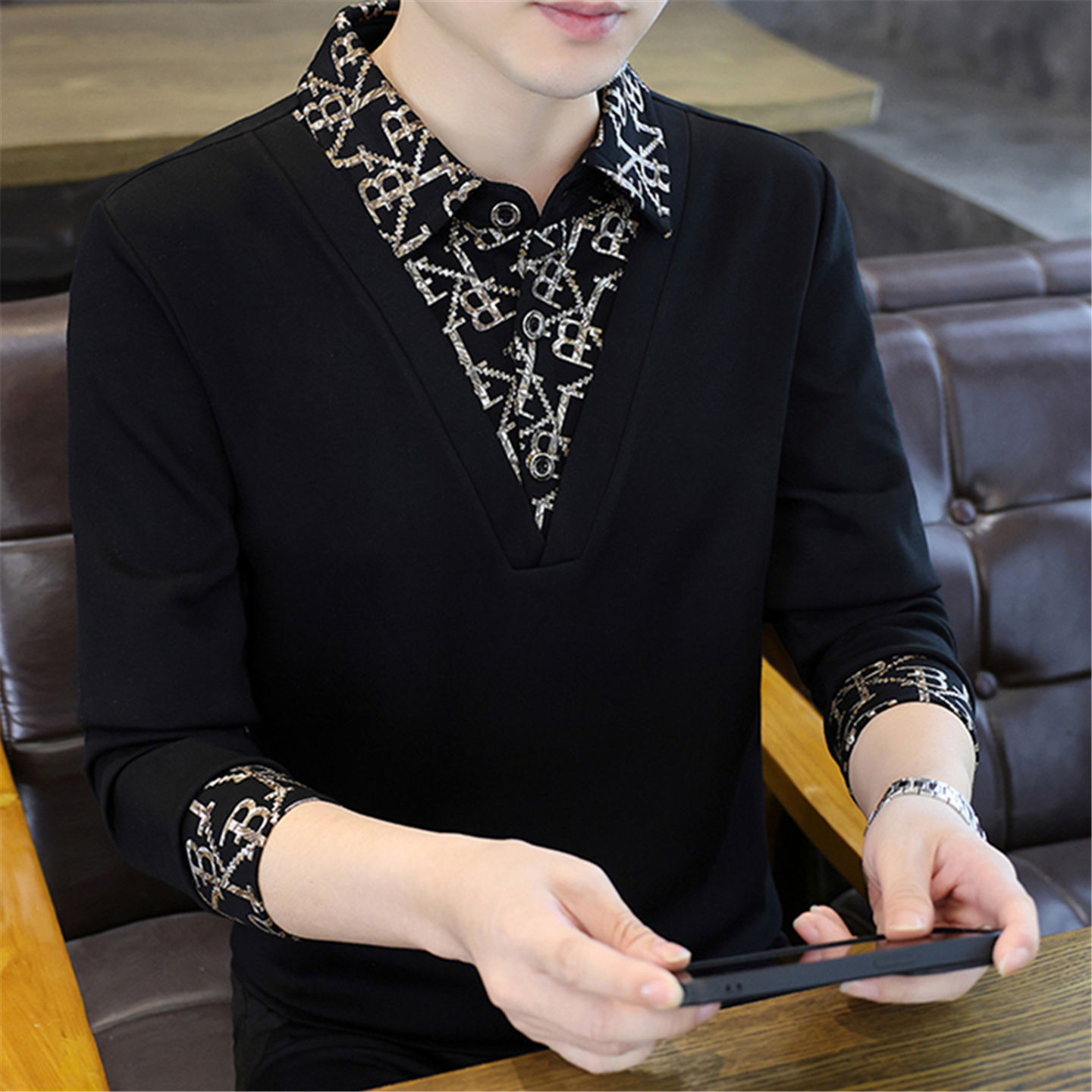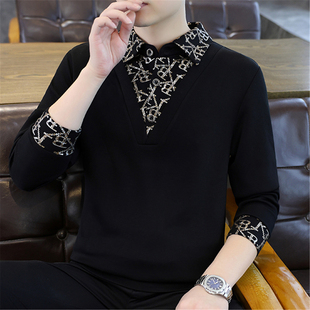 T恤潮流欧货假两件卫衣加肥加大码 长袖 时尚 男装 秋冬新款 小衫 男士