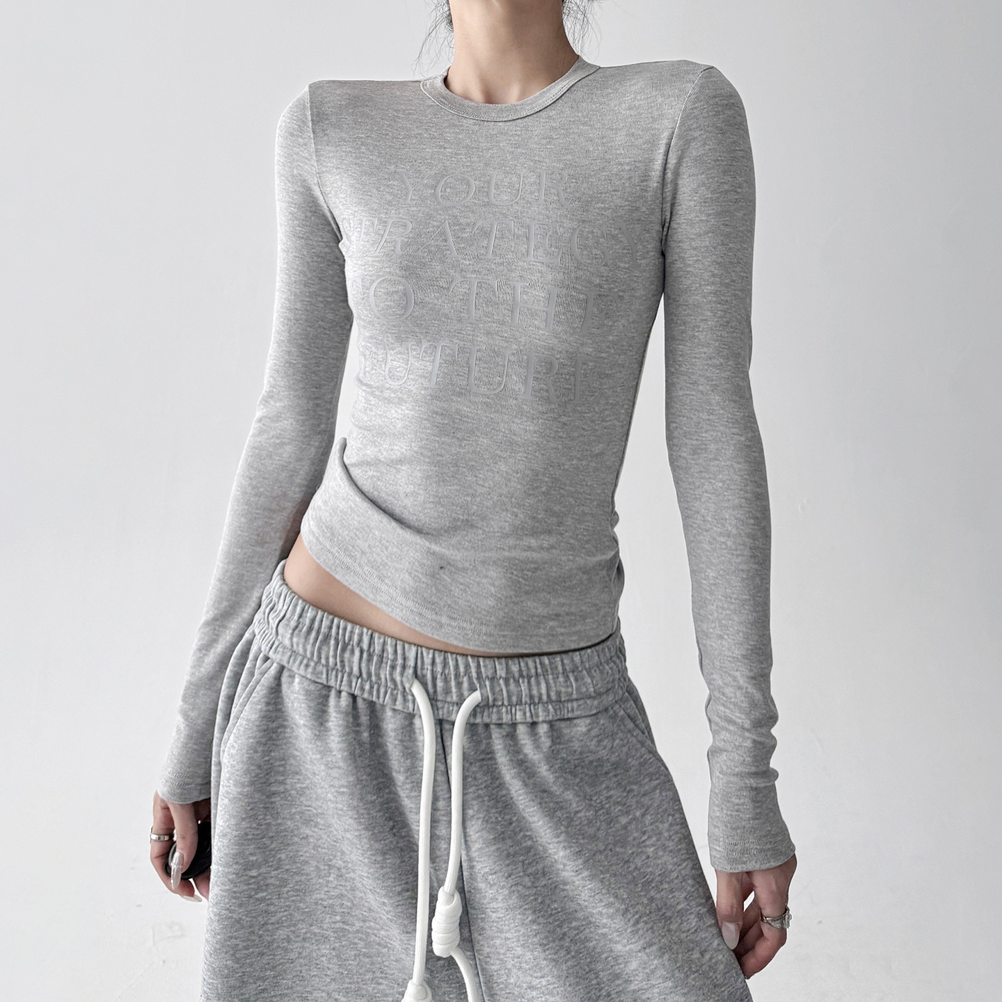 显瘦辣妹基础百搭高级感长袖 2025秋冬季 女字母修身 打底衫 T恤 新款