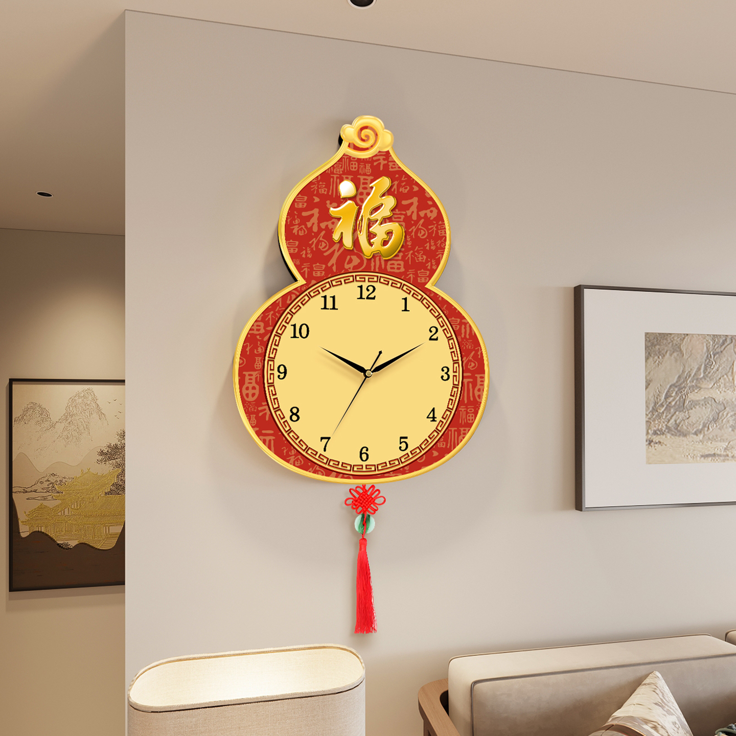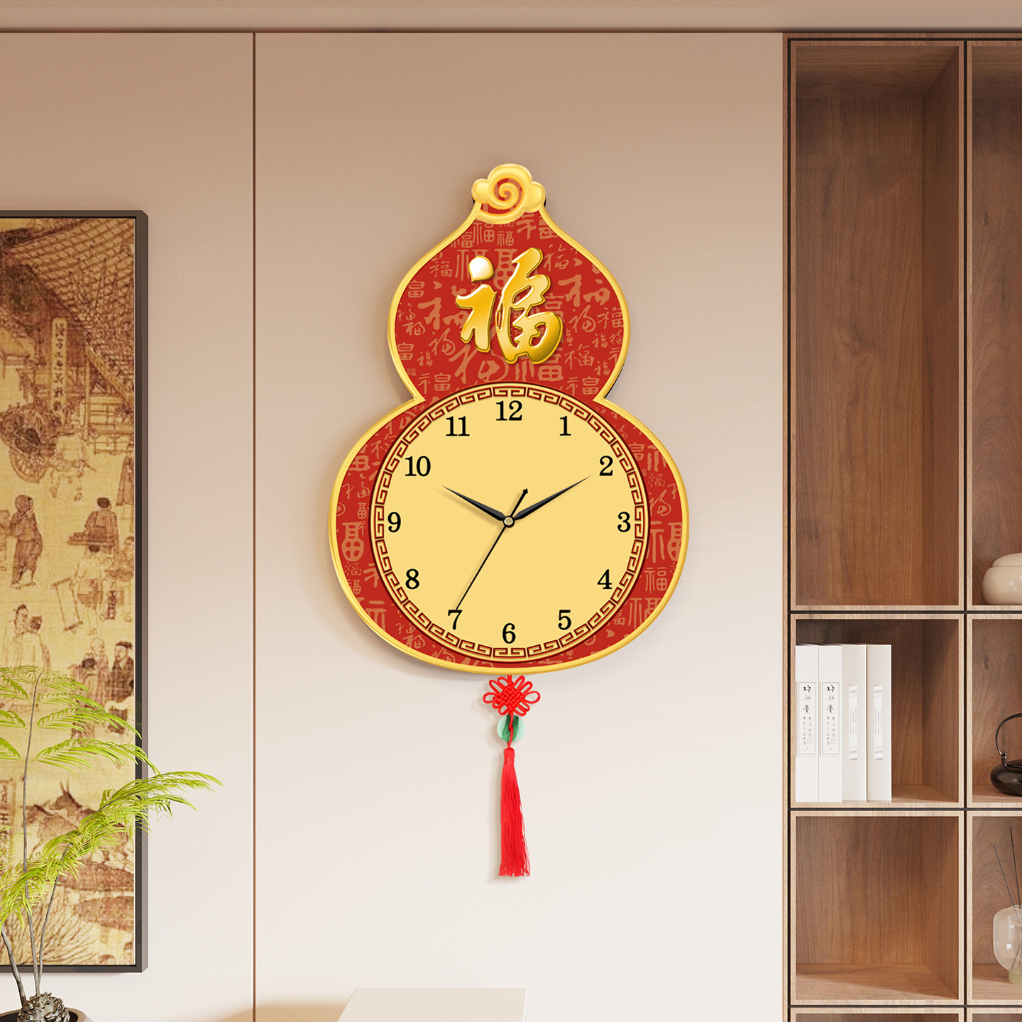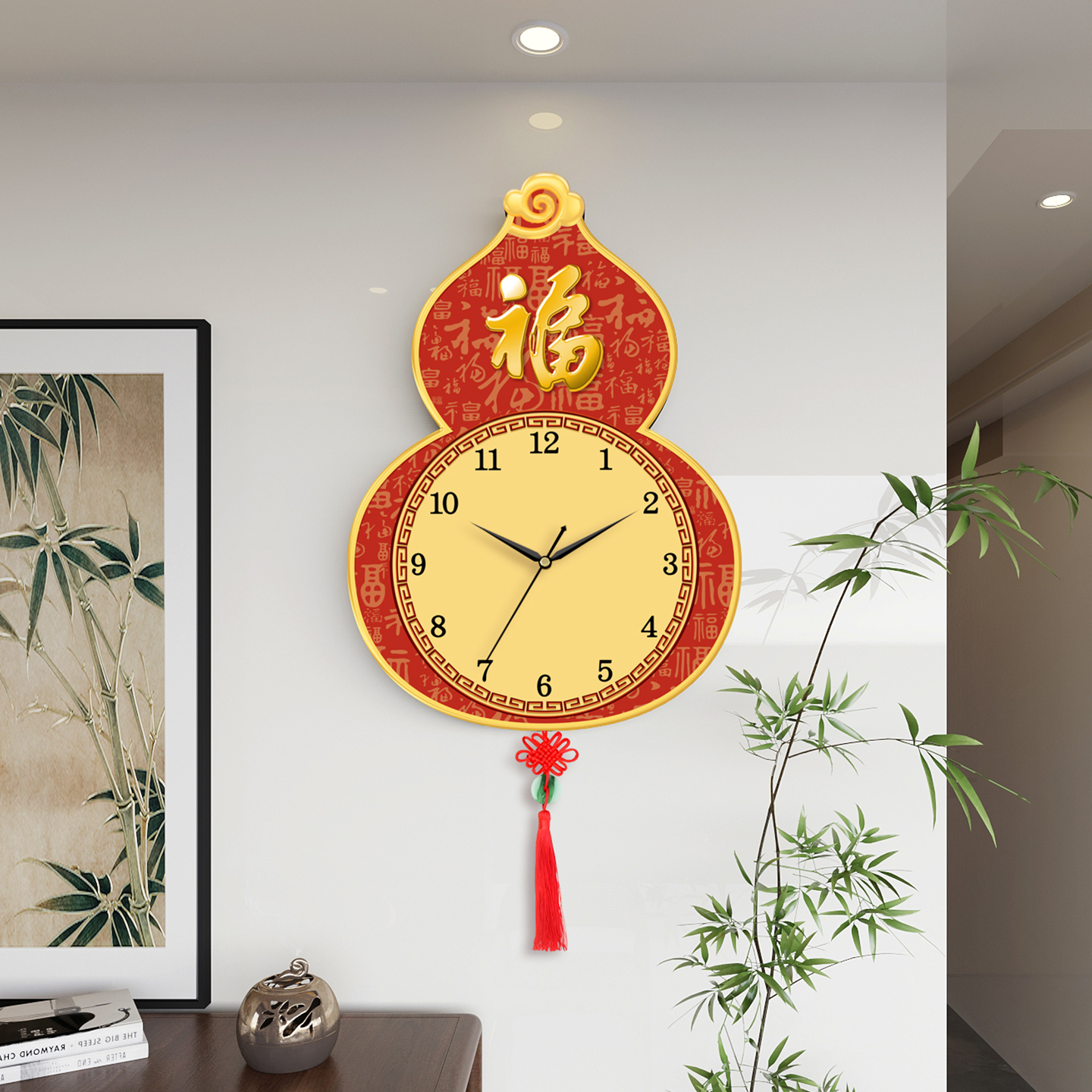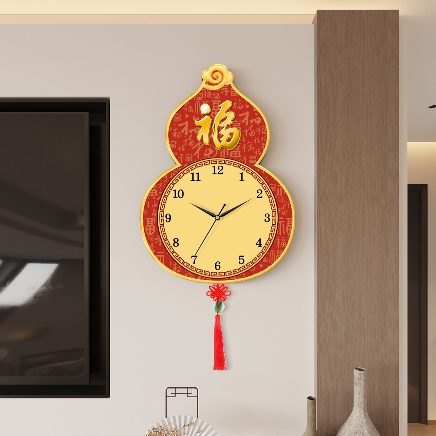 葫芦创意挂墙钟表静音挂钟客厅新款 饰餐厅挂表 福字时钟静音日历装