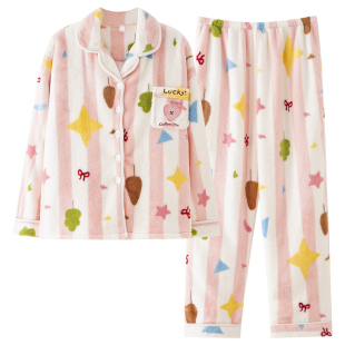 法兰绒保暖家居服套装 加绒加厚2025新款 秋冬季 猫人珊瑚绒睡衣女款