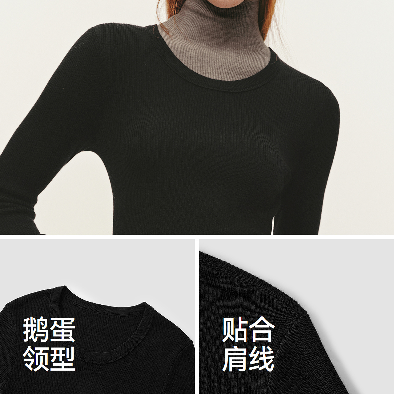 秋冬羊毛黑色内搭修身 2025新款 毛衣上衣 女半高领打底衫 猫人针织衫