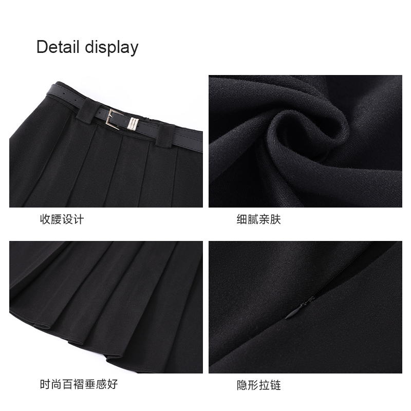 KHV真维斯黑色毛呢百褶半身裙女2025秋冬季 小个子中长裙a字裙 新款