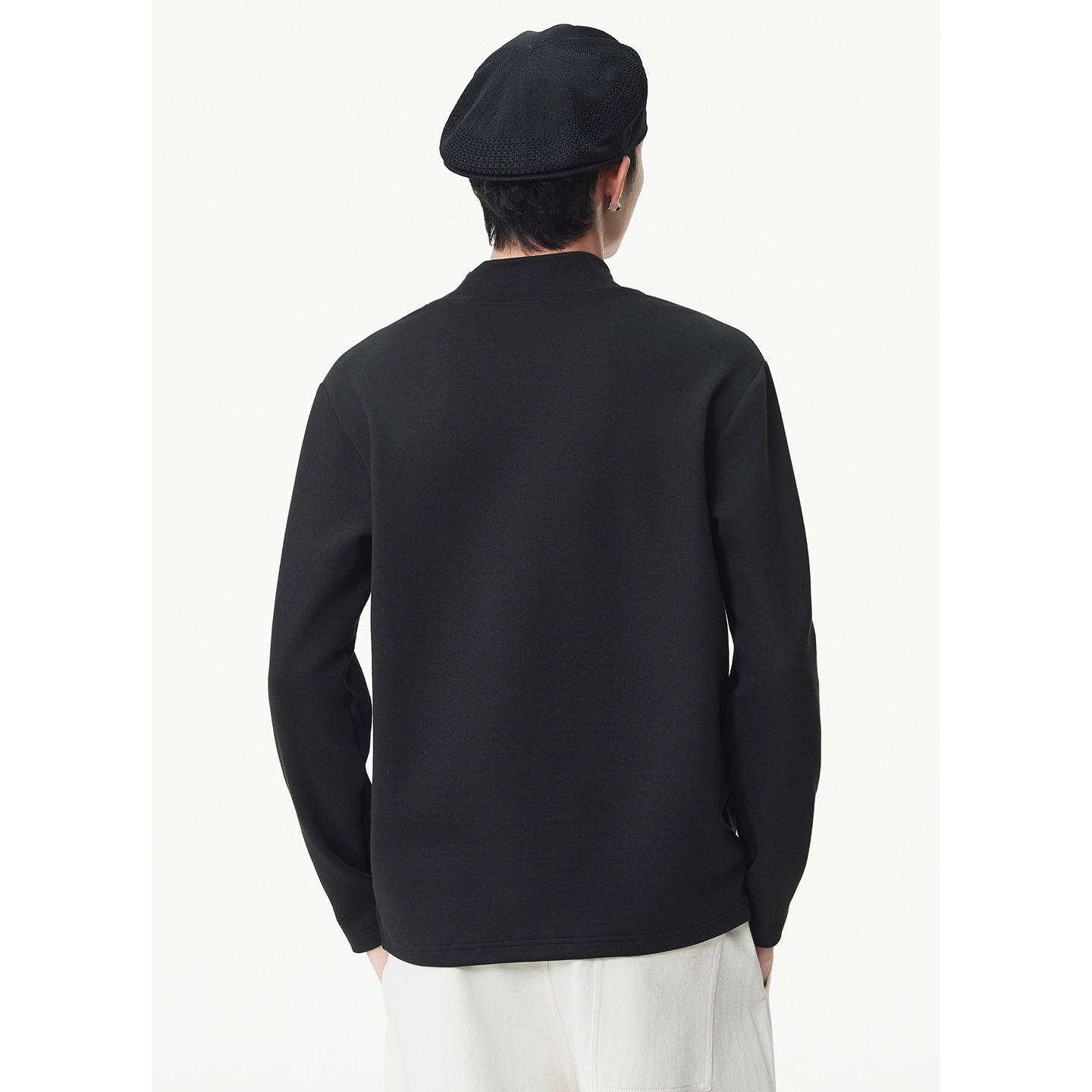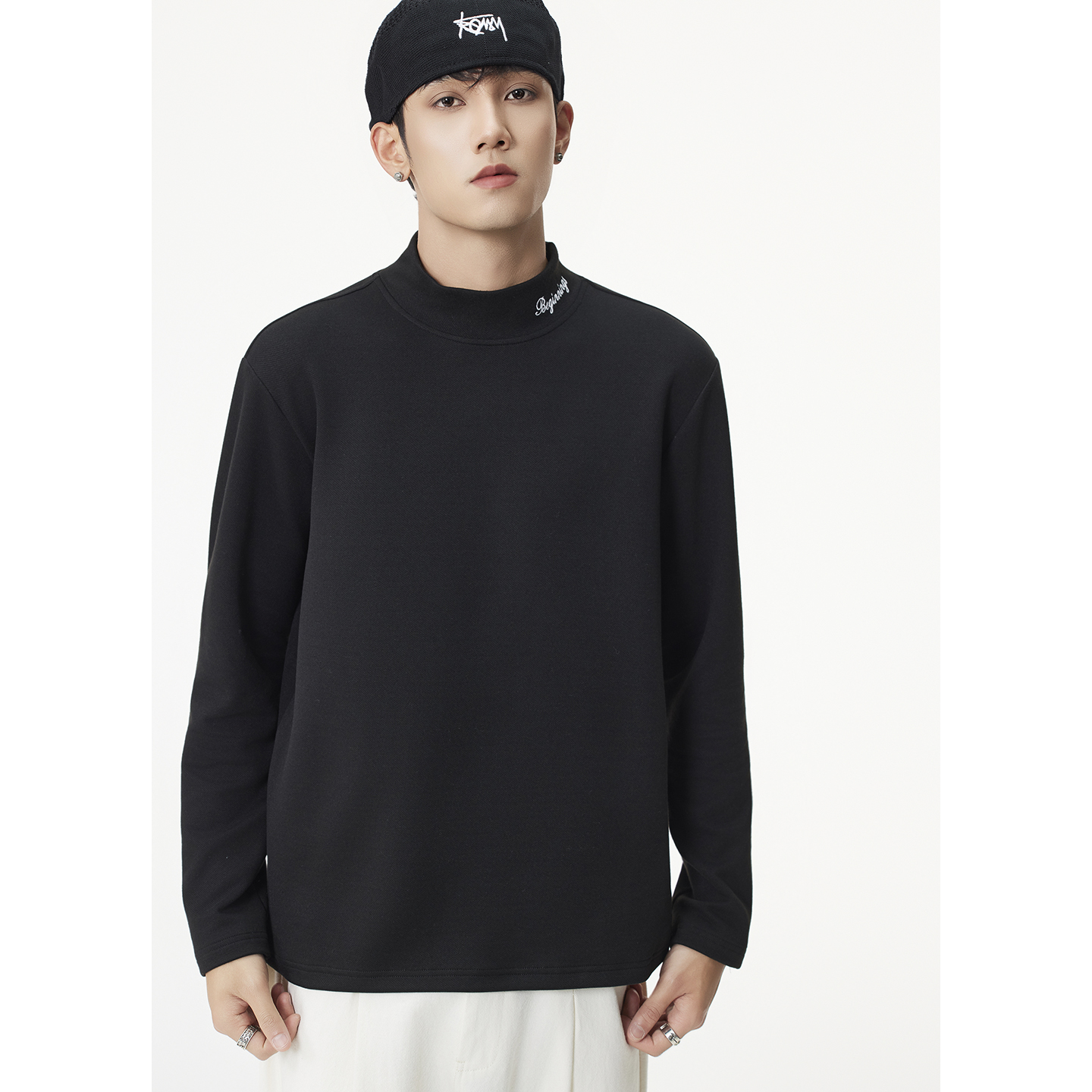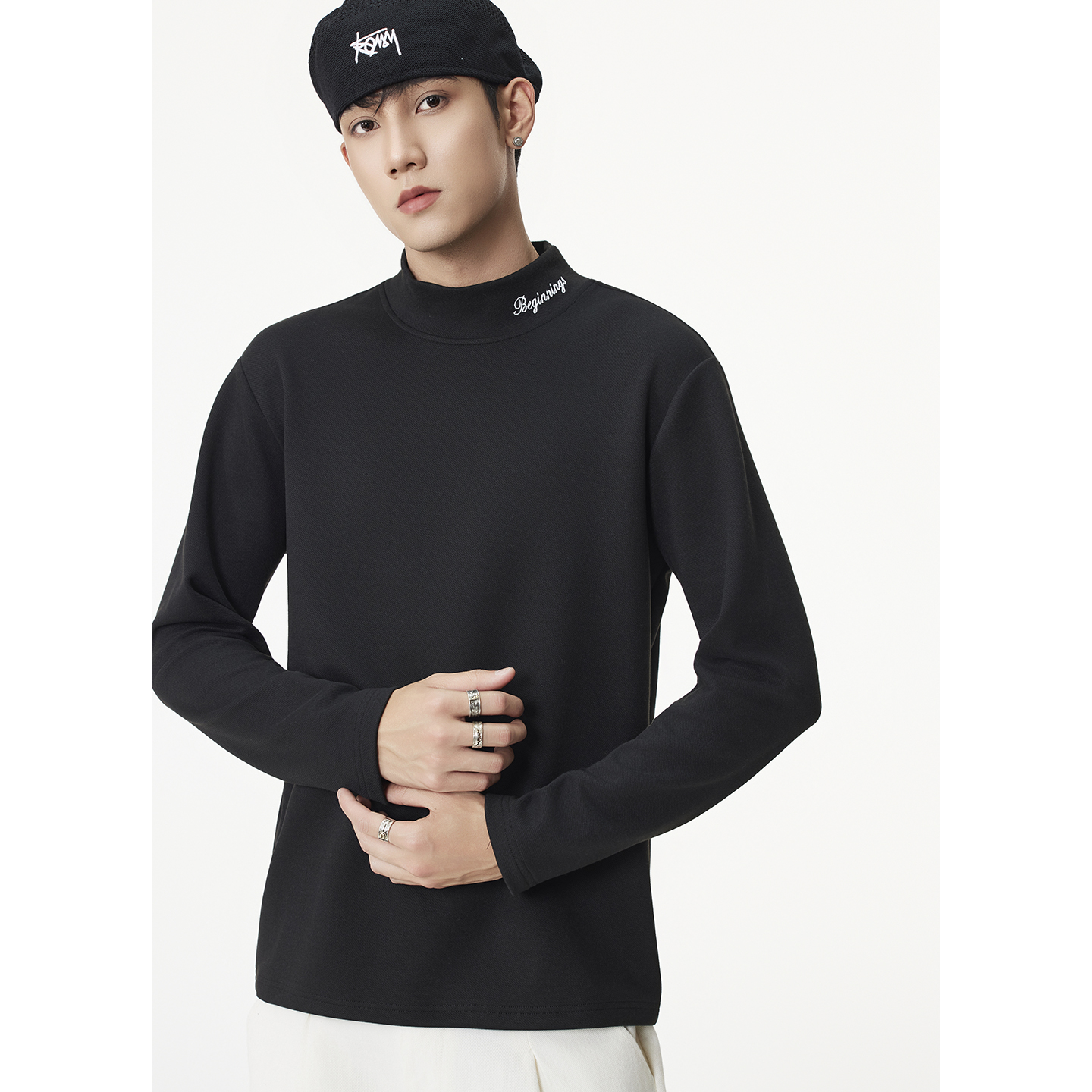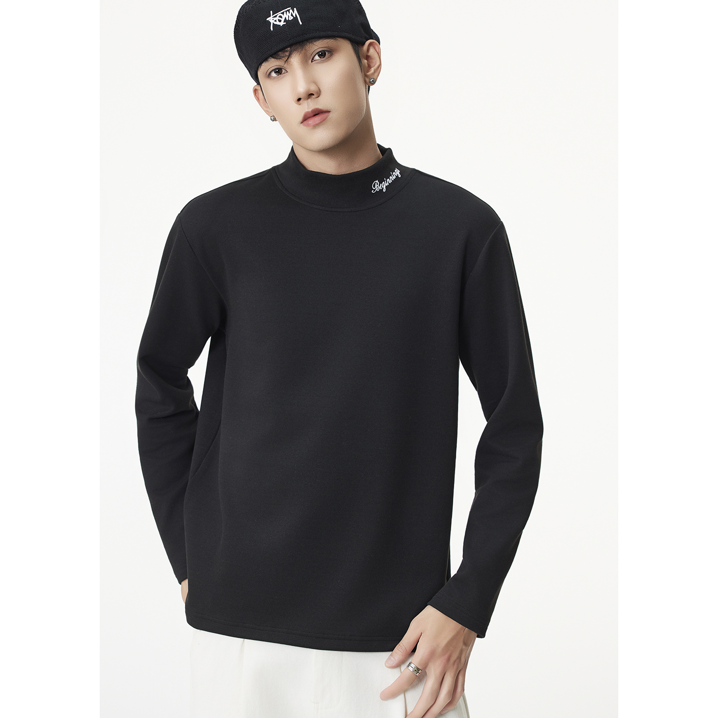 复古纯色半高领打底衫 新款 T恤男2025秋季 Kuvine潮流领口刺绣长袖