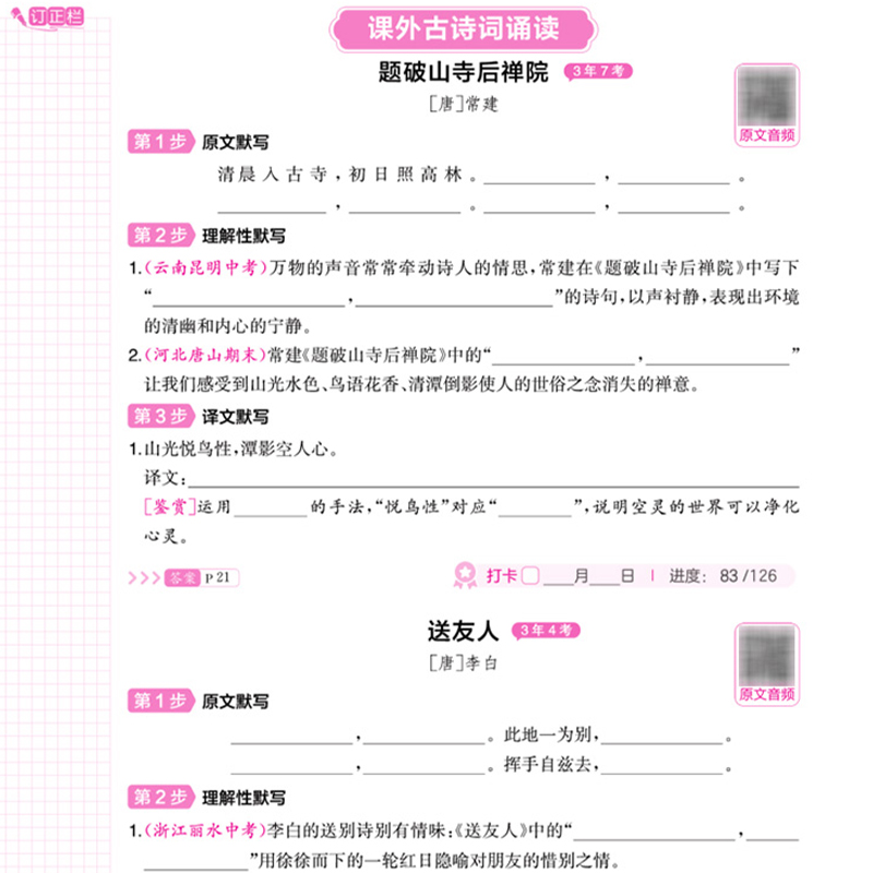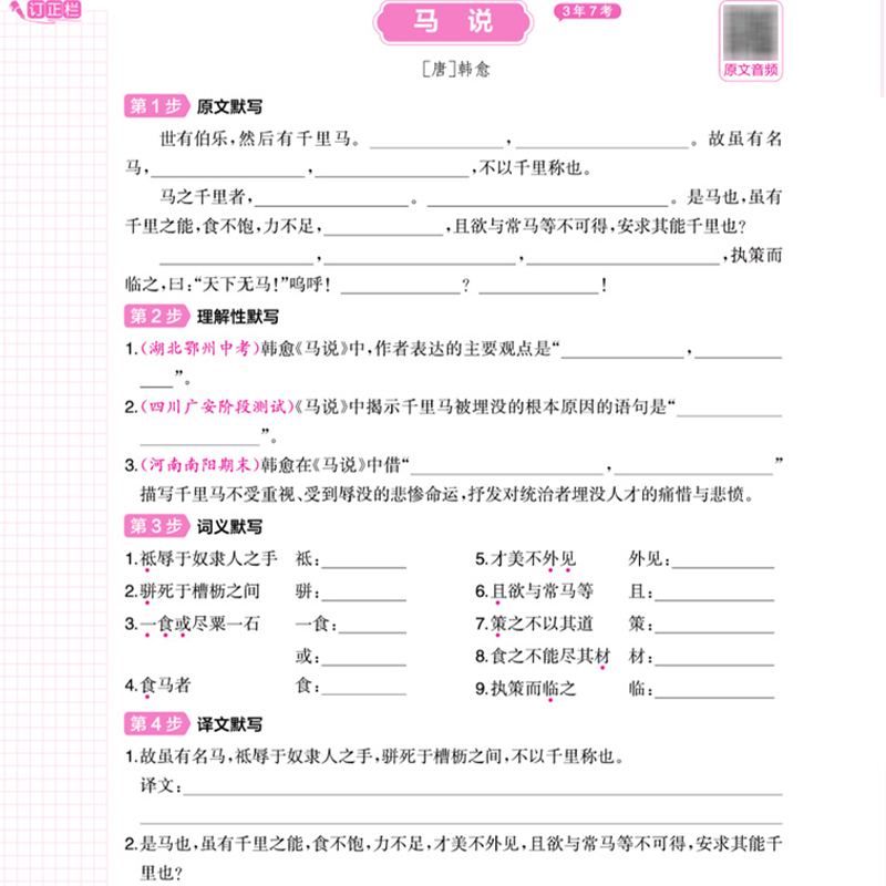 2026一本初中必背文言文古诗文默写七八九年级上下册课内外古诗文考点默写考频标注音频同步文言文和古诗词练习册中学中考教辅书zj