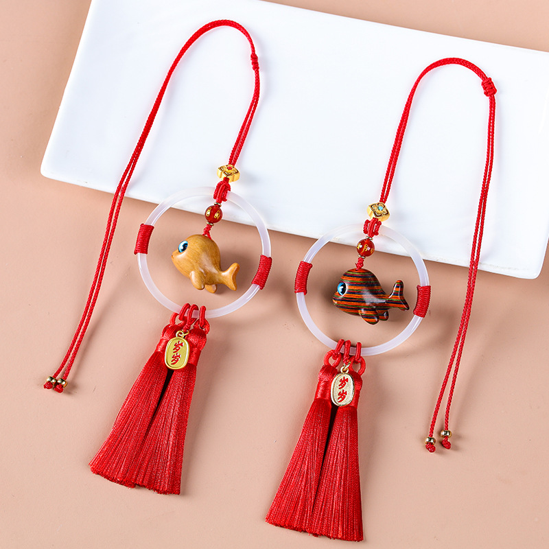 卡通可爱萌黑檀木小海豚鱼汽车挂饰汽车钥匙扣挂件精致吊坠挂饰品