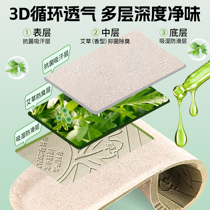 艾草除臭增高鞋 不累脚隐形内增高吸汗防臭女士运动气垫减震 垫男款