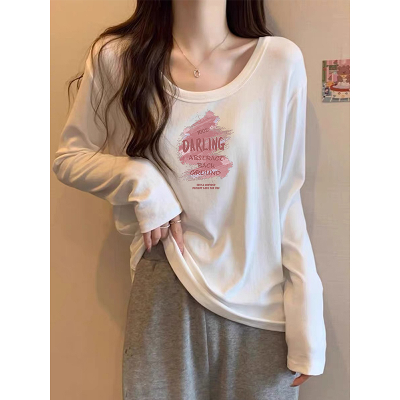 休闲胖mm遮肉显瘦上衣 t恤女春秋冬纯棉打底衫 大码 正肩U领宽松长袖