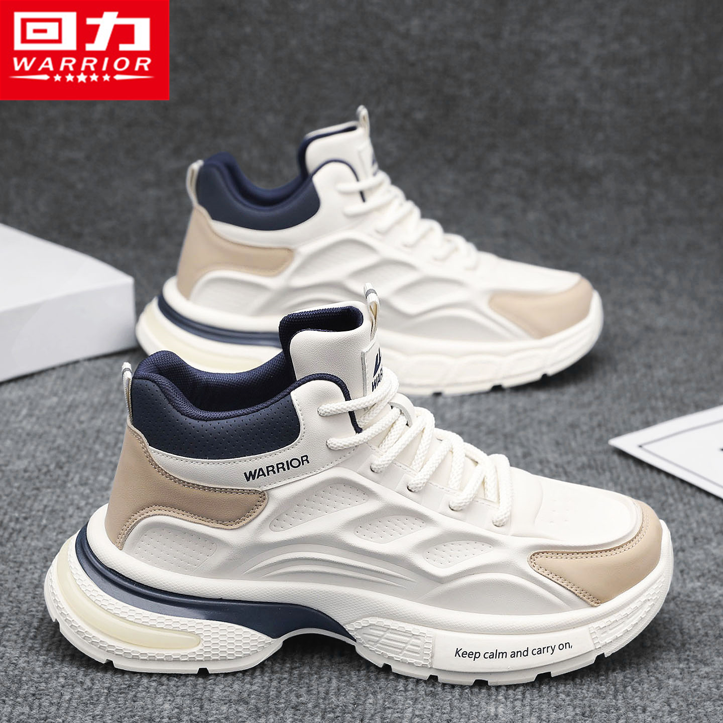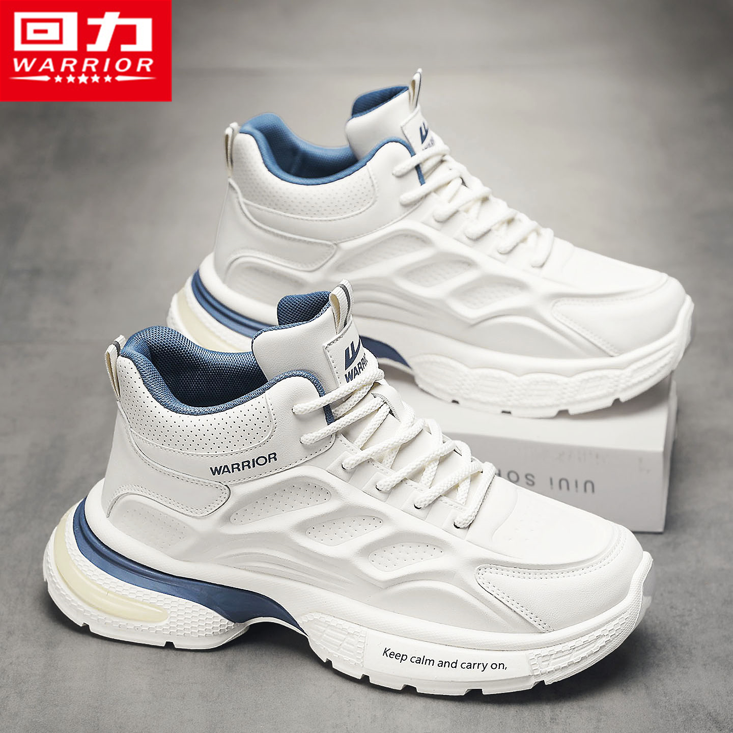 运动鞋 高帮休闲鞋 秋冬新款 子学生厚底男鞋 皮面鞋 征服鸿星尔克板鞋