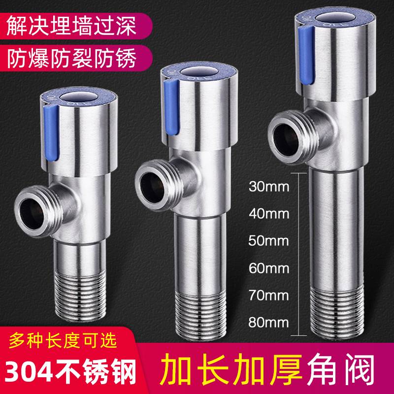 304不锈钢加长三角阀热水器马桶家用4分阀门开 水管角 关冷热水款