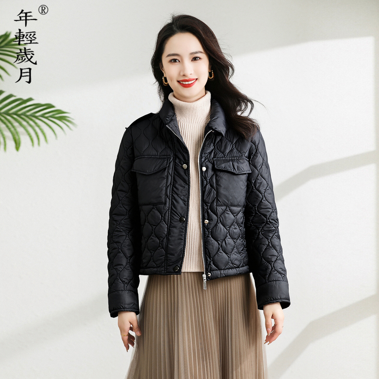 波司登巴恩风25秋新款 翻领外套 女轻薄羽绒服复古风有光泽菱格短款