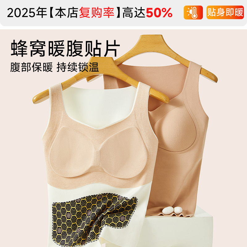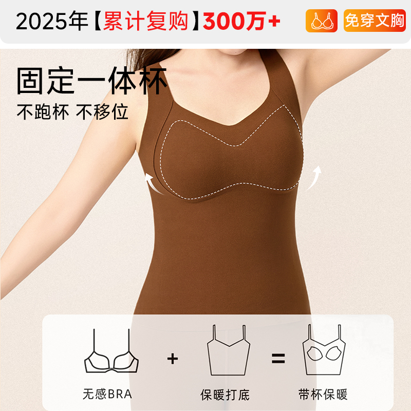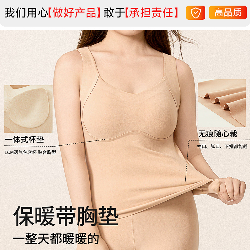 宜而爽大码 保暖背心女胖mm秋冬内搭带胸垫无痕打底内衣秋衣秋冬季