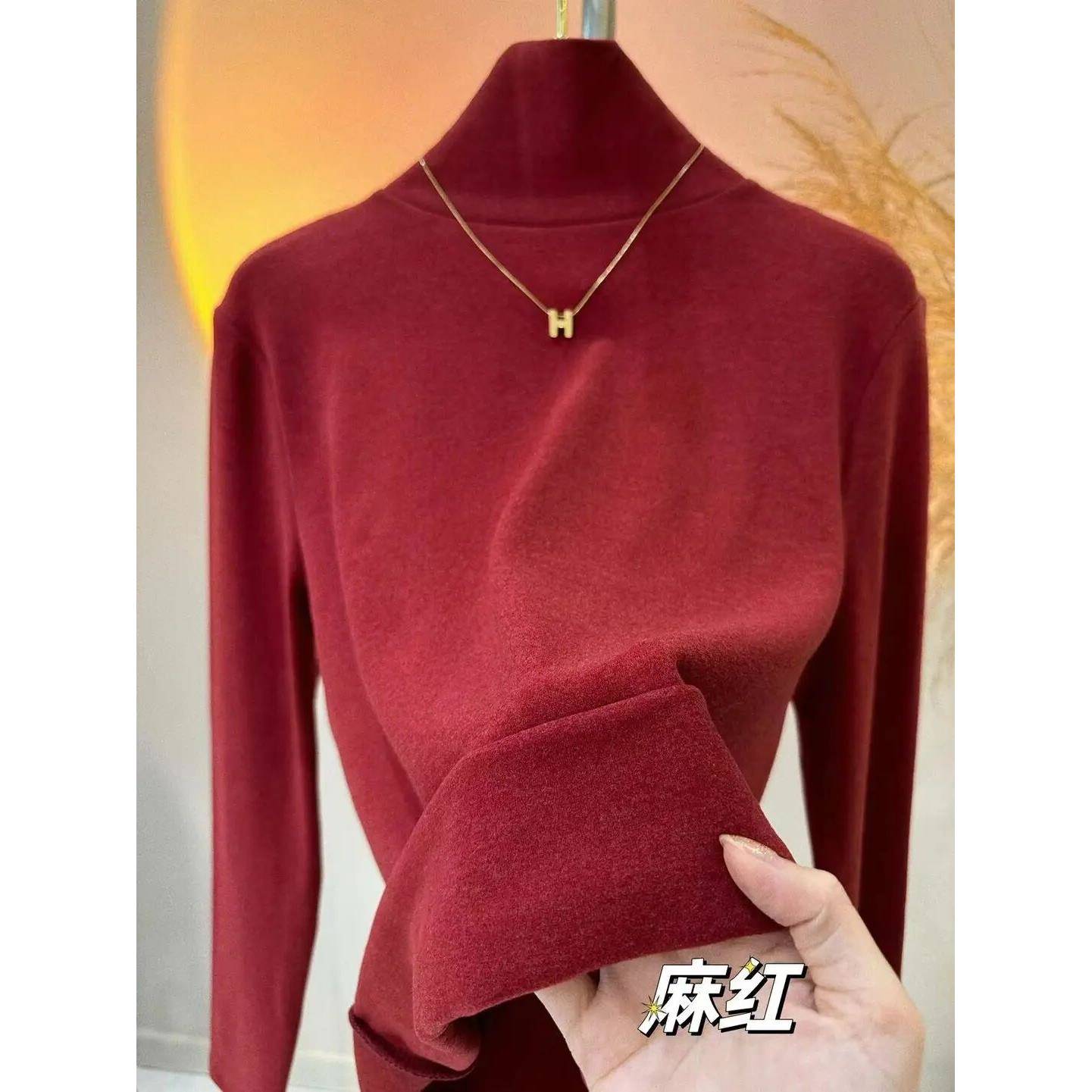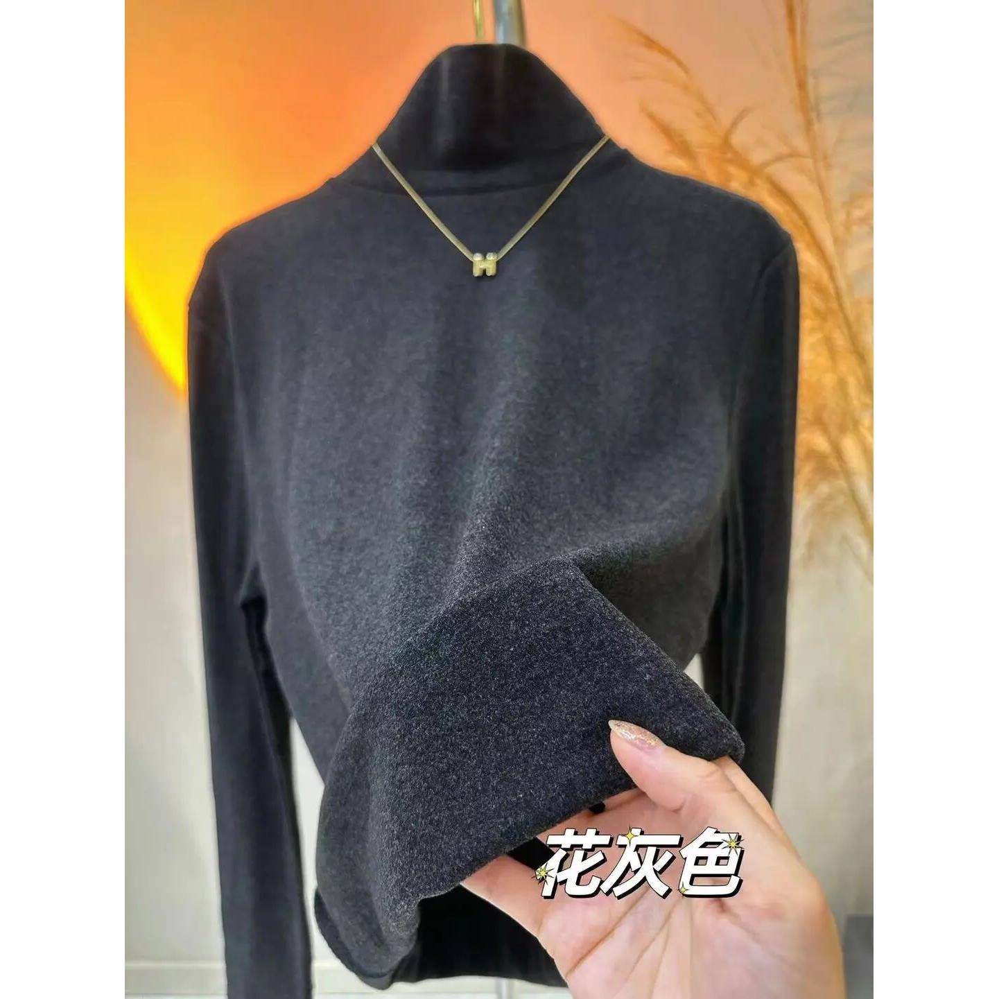 1015h 洋气减龄色上衣女大码 堆堆领双面保暖打底衫 2025年秋冬新款