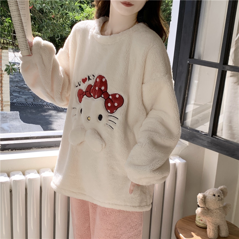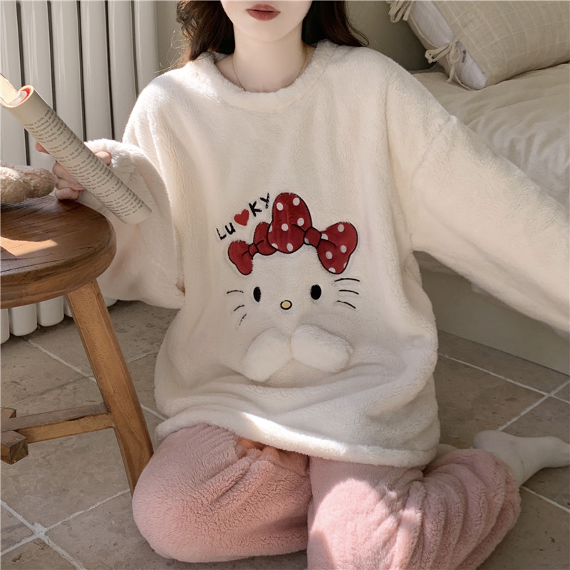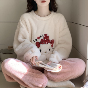 tbh野兽派家居Hello 秋冬可外穿睡衣女 Kitty全棉法兰绒家居服套装