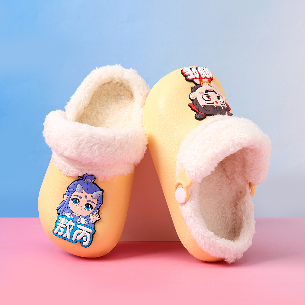 青少年室内居家宝宝毛毛绒包跟棉拖鞋 卡皮巴拉儿童棉拖鞋 男童冬季