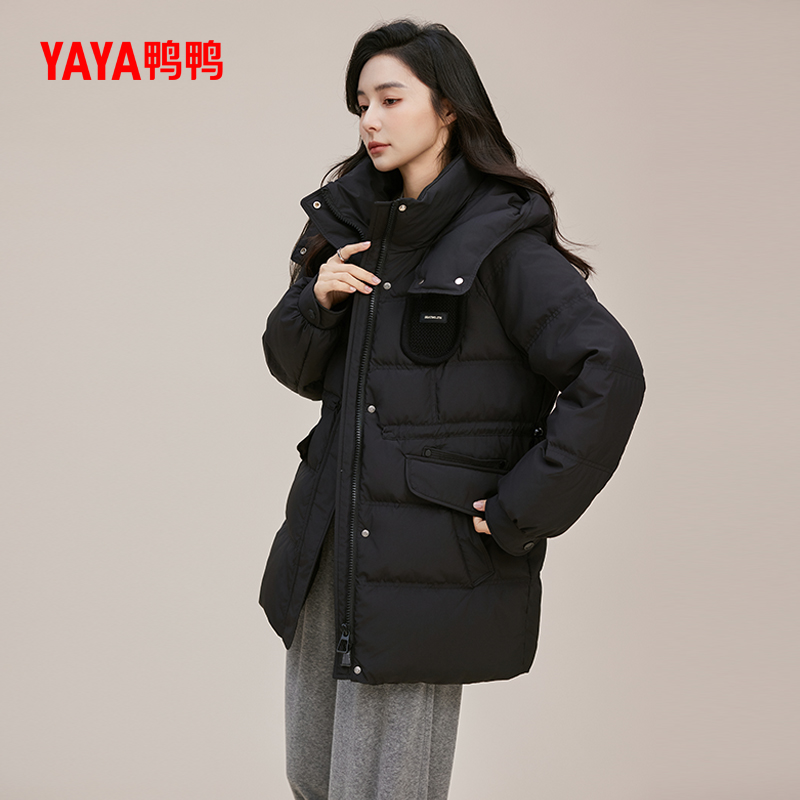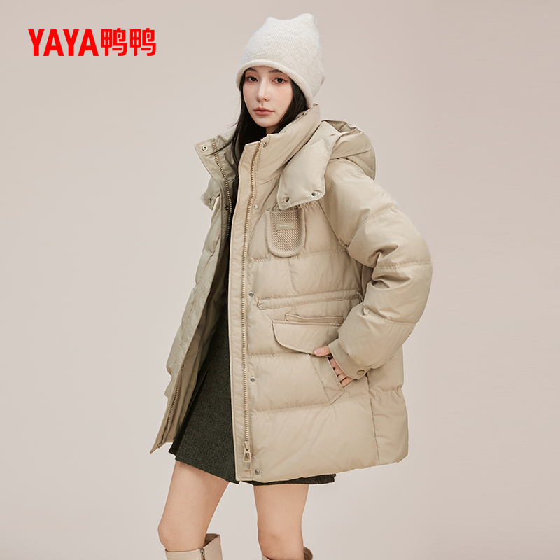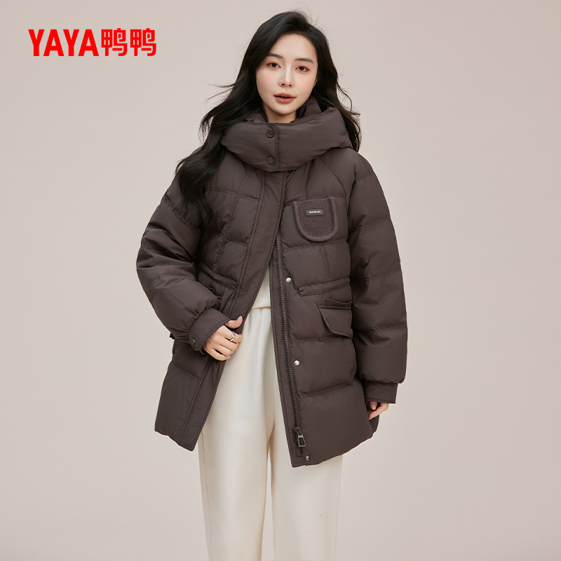时尚 休闲加厚立领连帽女士长款 高充绒保暖羽绒服 冬季 鸭鸭2025新款