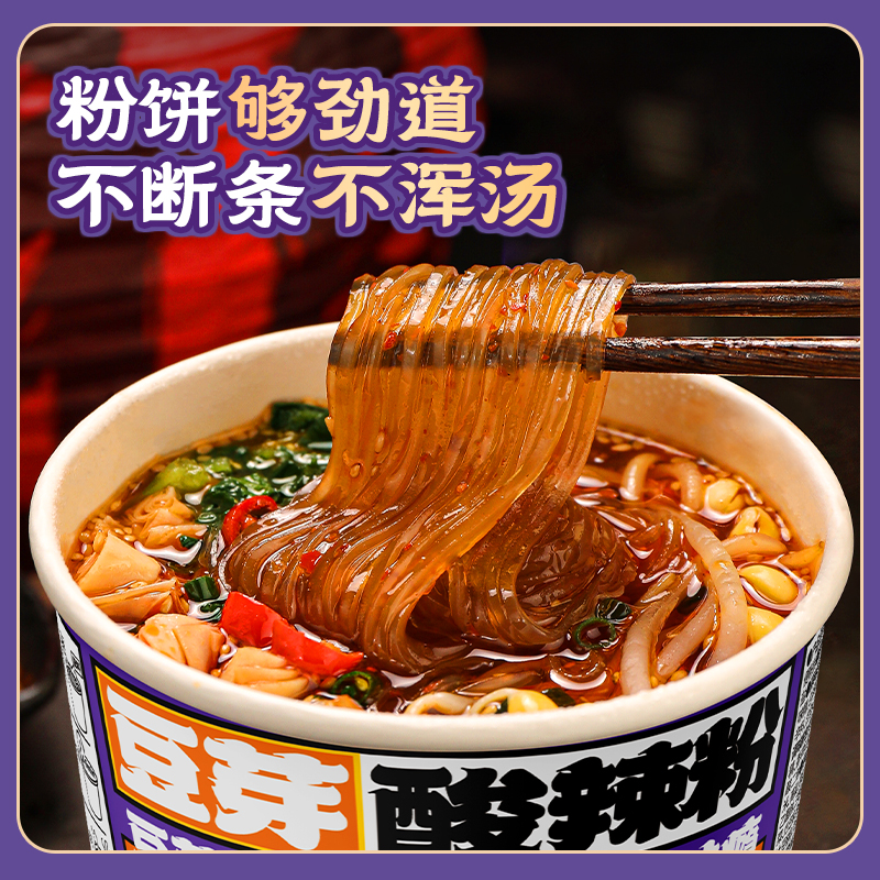 丽星酸辣粉新口味豆芽酸辣粉方便速食免煮冲泡红薯粉夜宵追剧搭子
