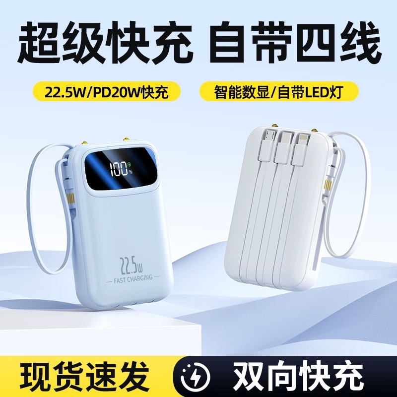 旗舰店适用于手机充电可上飞机 超级快充充电宝超大容量20000毫安超薄小巧便携自带线官方正品 3C安全认证