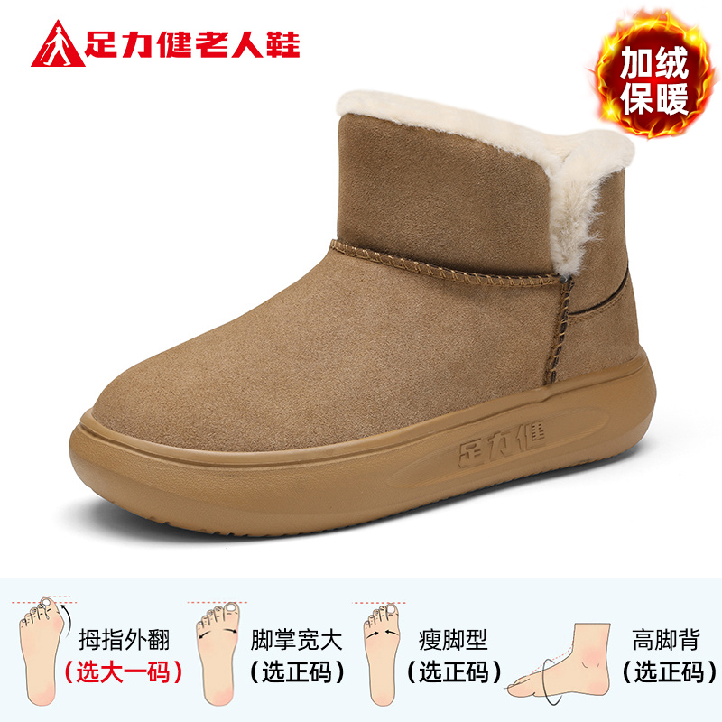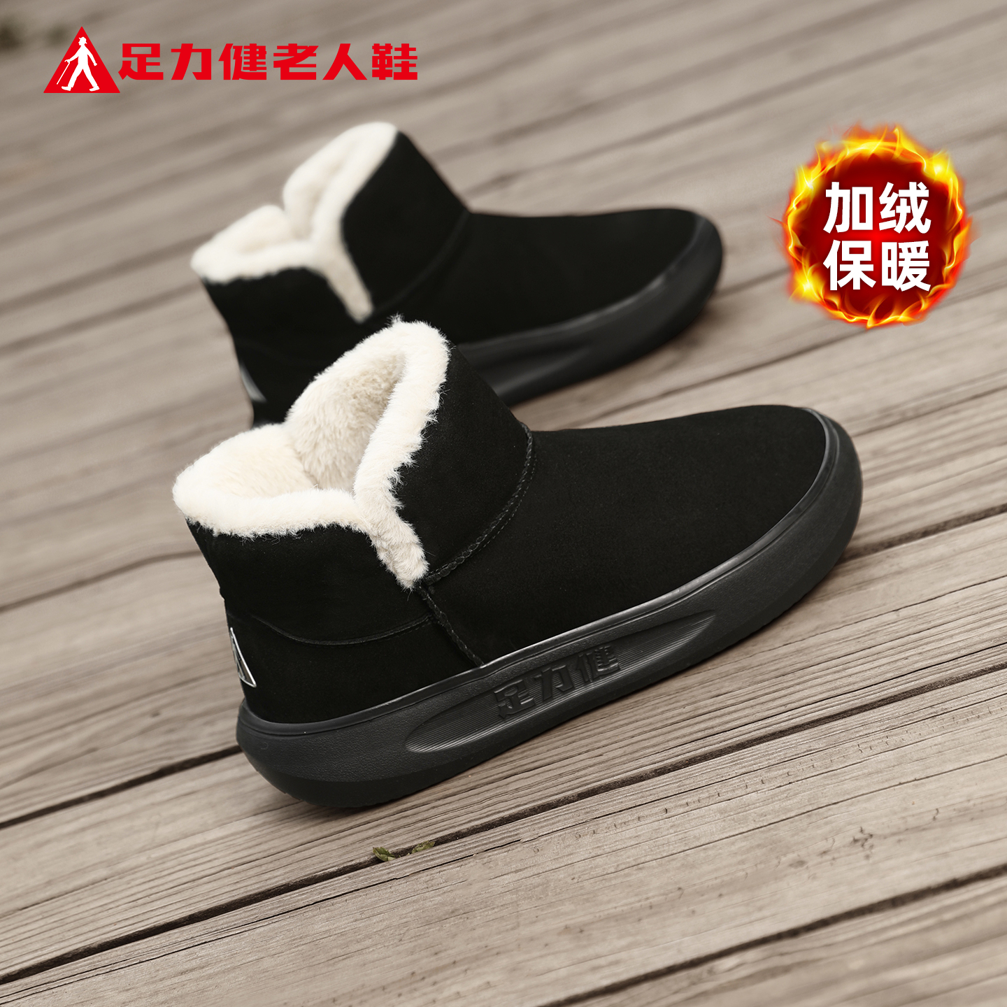 雪地靴休闲男鞋 加绒保暖棉鞋 官方旗舰店中年爸爸冬季 足力健老人鞋