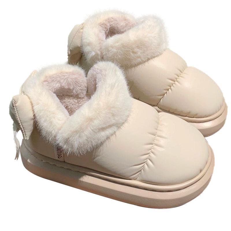 户外穿防滑防水PU短筒棉靴冬季 蝴蝶结保暖女士雪地靴 加绒加厚棉鞋