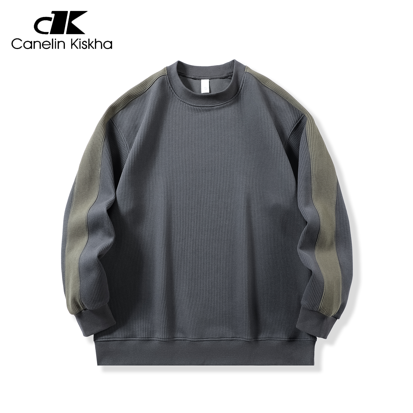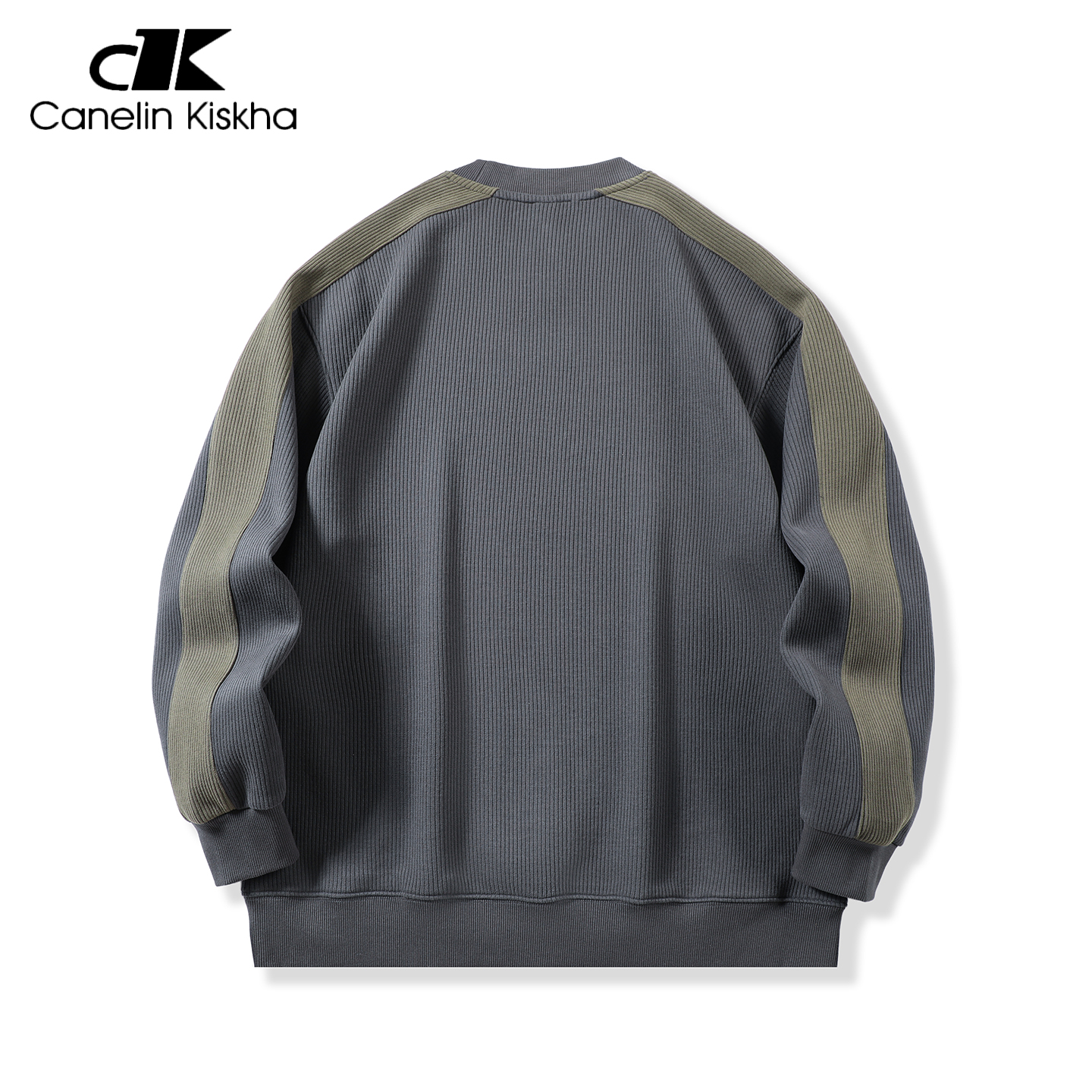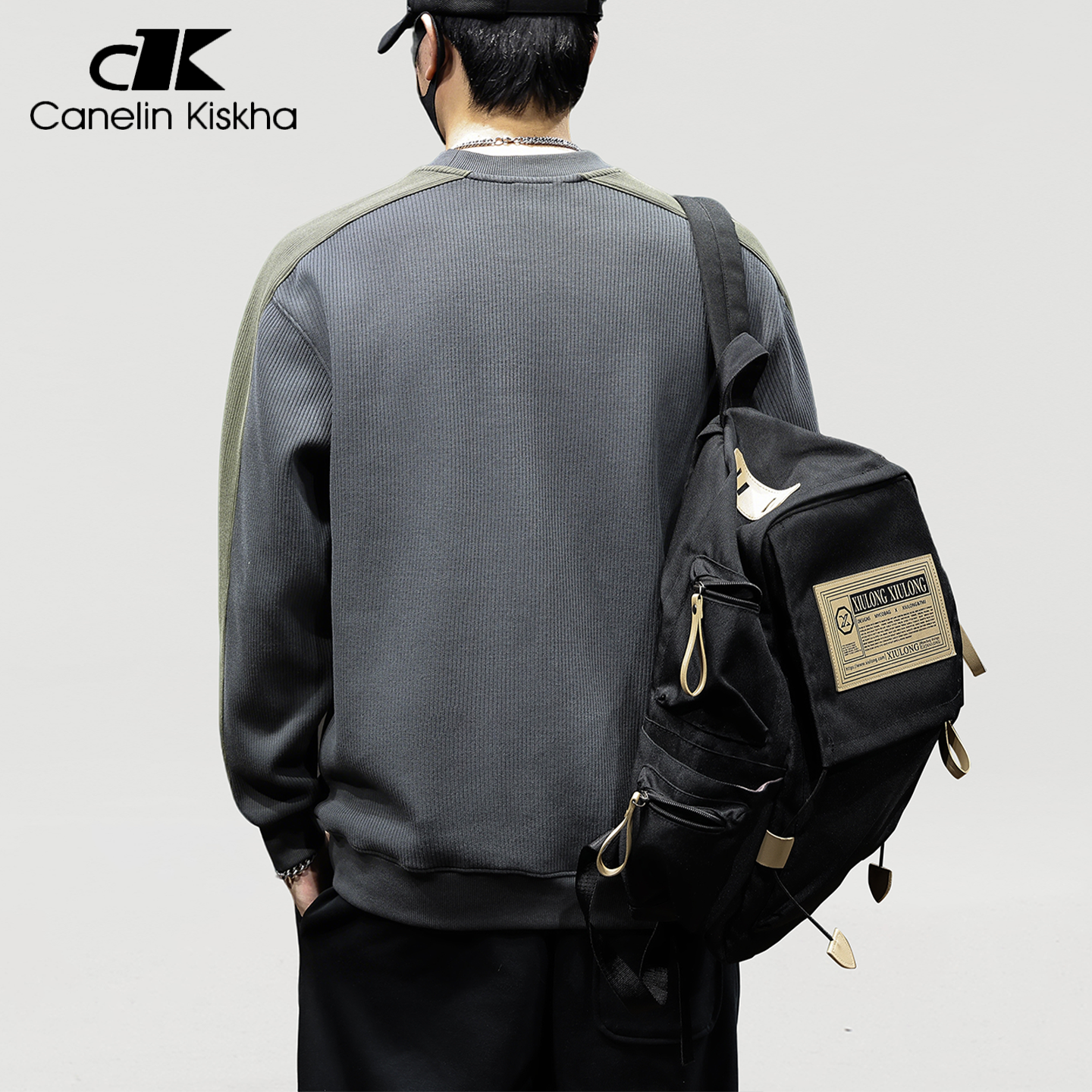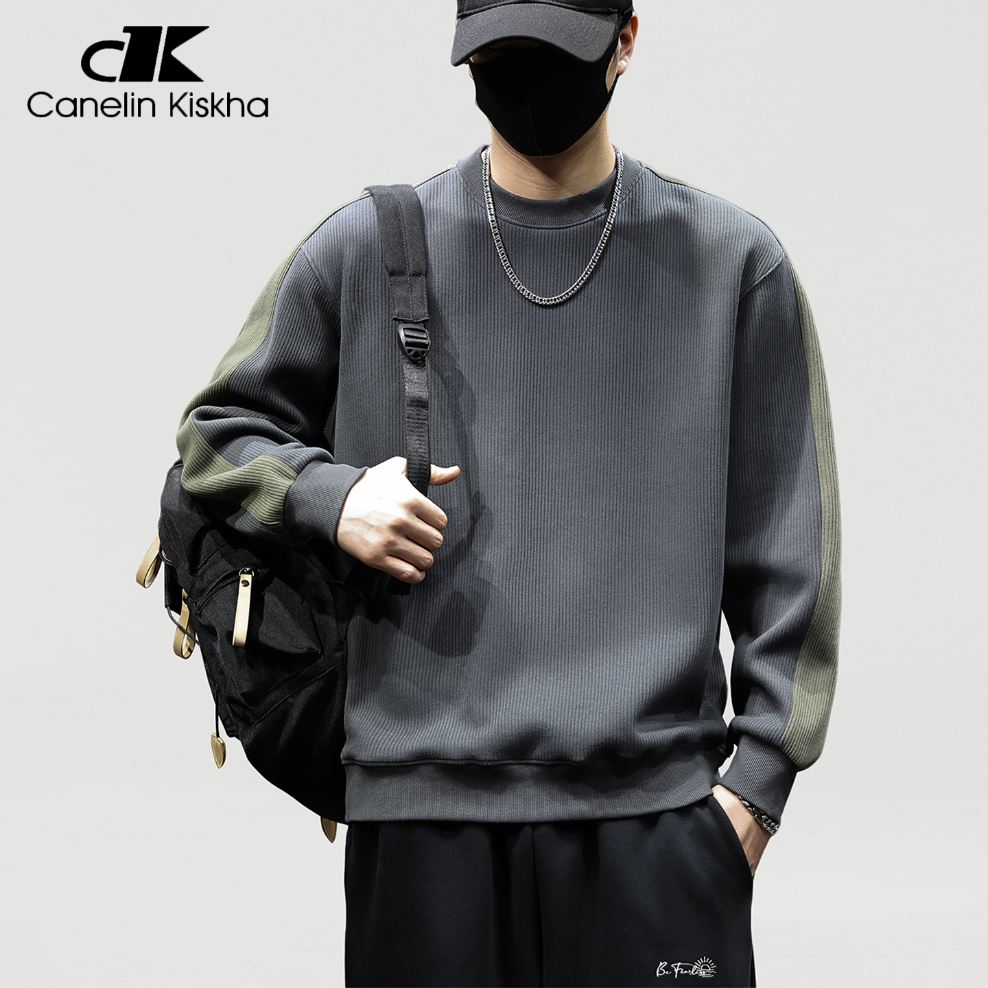 Kiskha拼接撞色圆领卫衣男士 上衣男款 秋季 潮牌长袖 打底衫 Canelin