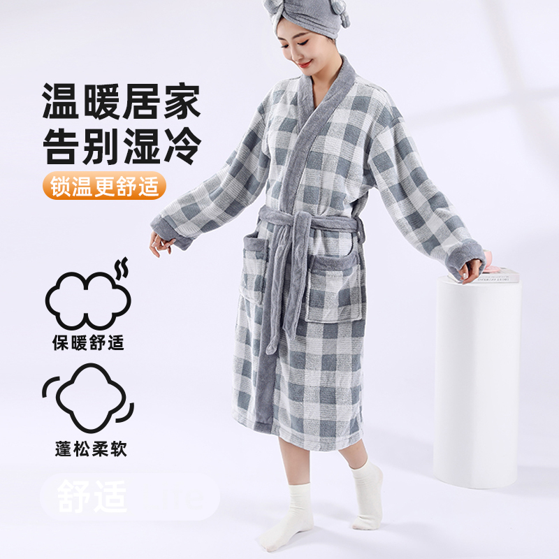 四季 浴衣2025新款 通用 浴裙睡袍式 浴袍女吸水速干可穿浴巾加厚长袖