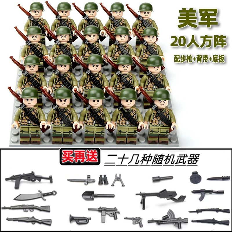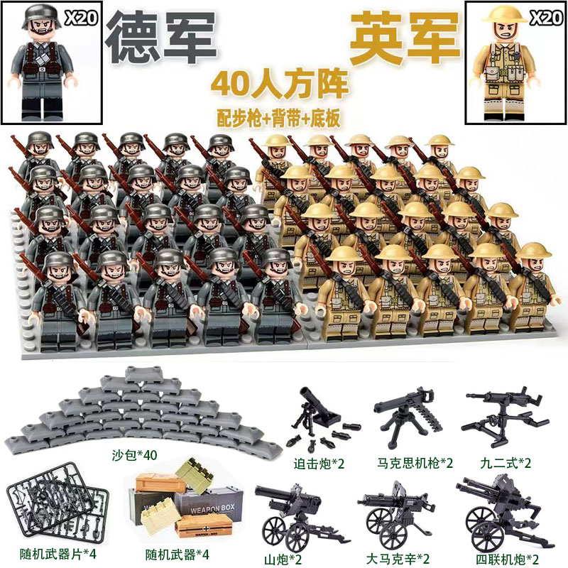军事积木二战美德苏八军团大作战士兵重武器清仓男适用于玩具