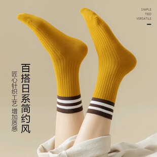 配鲨鱼裤 纯棉长袜秋冬条纹外穿潮堆堆袜长筒 袜子女士中筒冬秋款