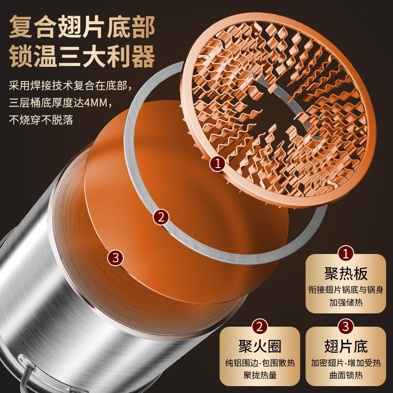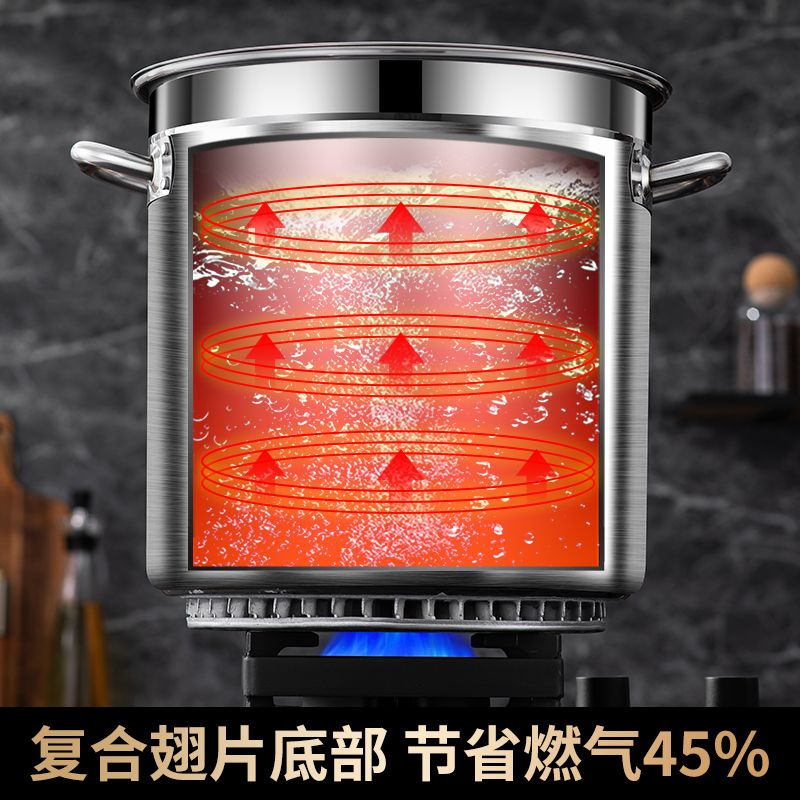 明火节能汤桶316不锈钢翅片桶商用特厚大容量带盖圆桶聚热专用桶
