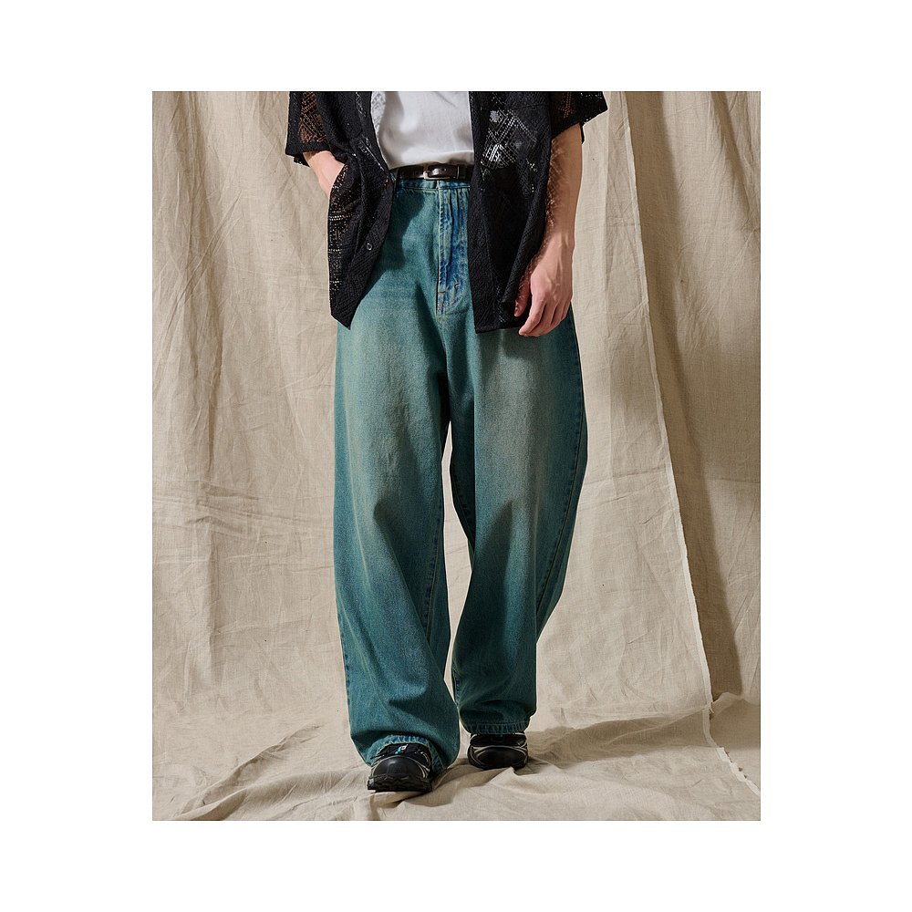 阔腿宽松弯刀裤 做旧水洗牛仔裤 L2C5NK119 美式 indicia标记2025新款