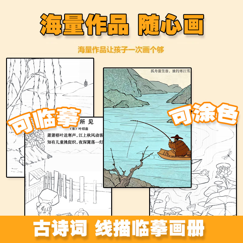 女孩图画古风专用纸基础自学教程绘 线描临摹画册.古诗词 儿童画画本q版 漫画入门手绘描摹本 画素描临摹练习画册书 漫画描摹本
