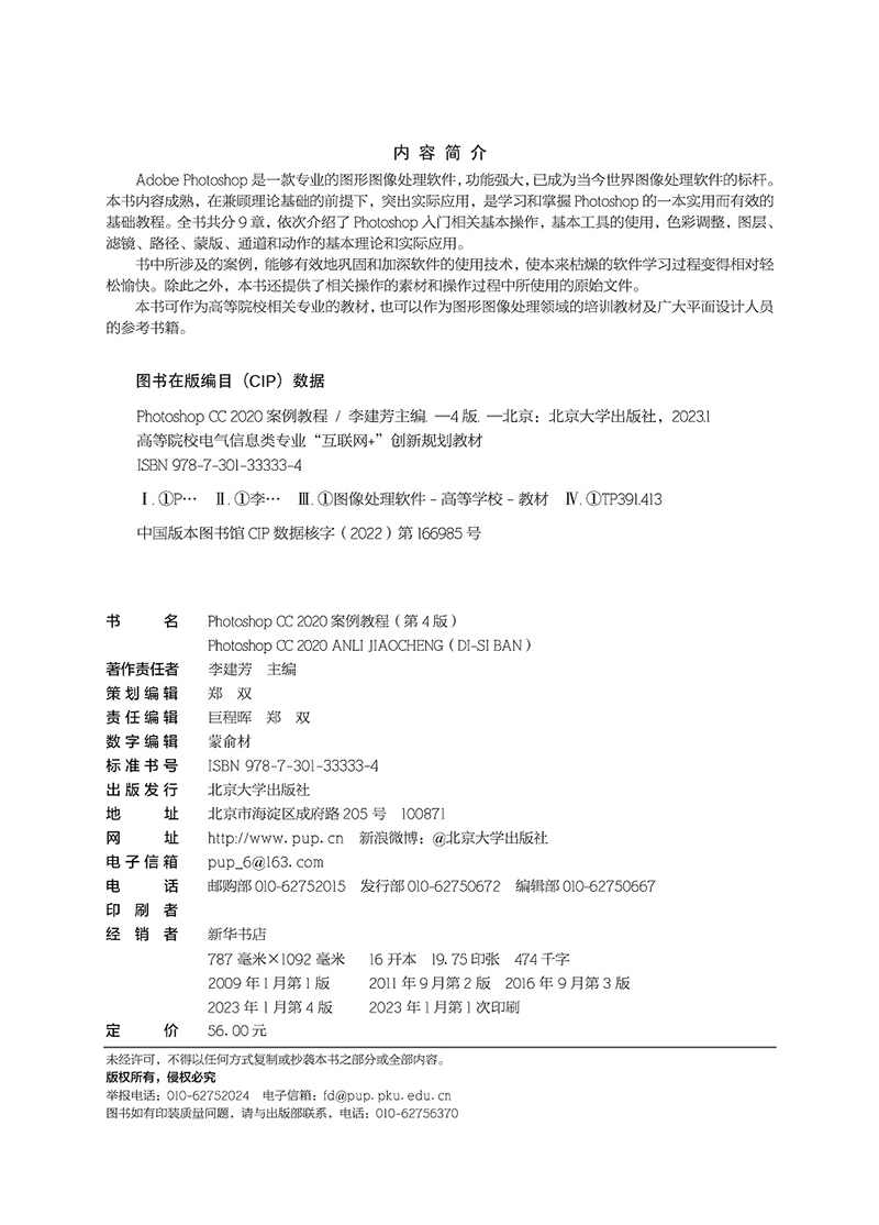 创新规划教材 社 李建芳 高等院校电气信息类专业 第4版 Photoshop 2020案例教程 北京大学出版 正版 互联网 2023新书