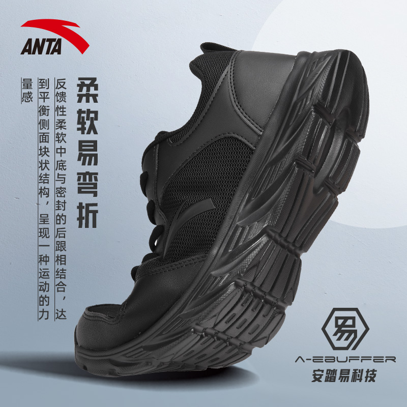 2025新款 透气跑步鞋 全黑软底减震男士 安踏男鞋 跑鞋 秋季 正品 运动鞋