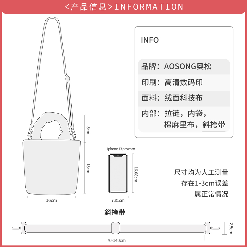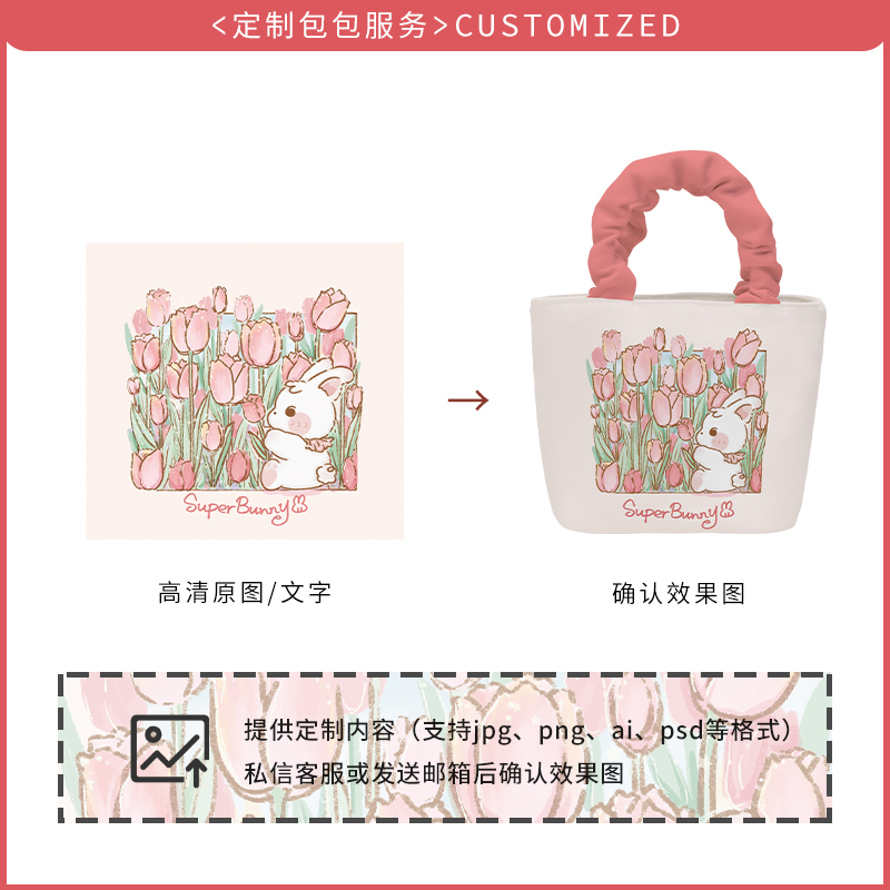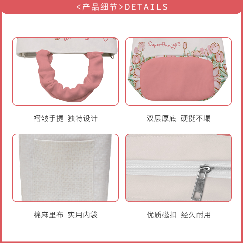 奥松联名郁金香手提包小拎包斜挎女粉色云朵包可爱上班通勤帆布包