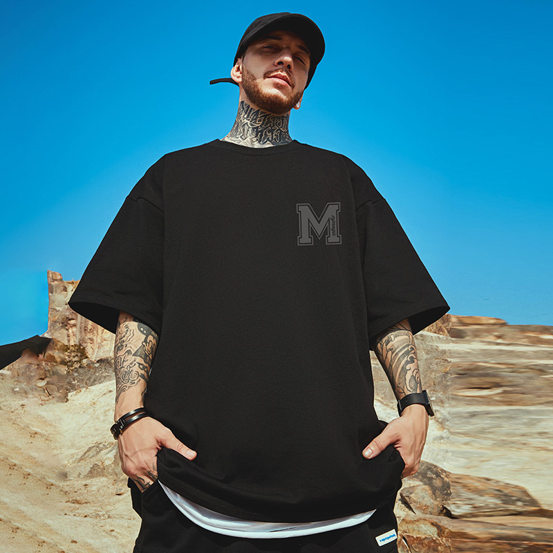 夏季 高街潮牌宽松T恤胖子短袖 男装 纯棉国潮大码 男加肥加大五分袖