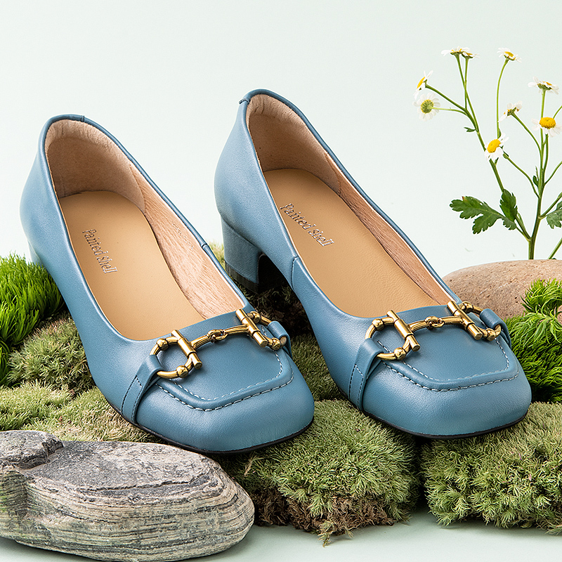 女粗跟浅口法式 通勤百搭中跟鞋 女鞋 子潘暇脚宽大码 真皮单鞋