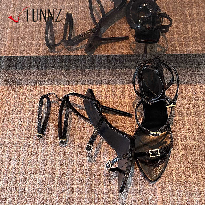 女水钻露趾高跟鞋 Hunnz 性感绑带水钻细跟凉鞋 新款 10CM 2025夏季