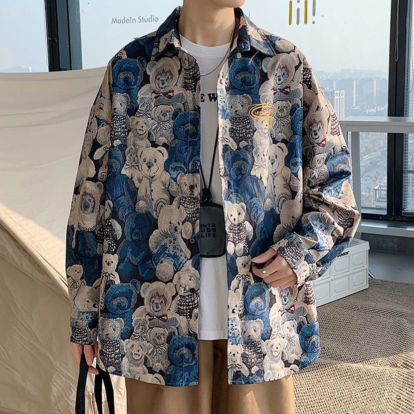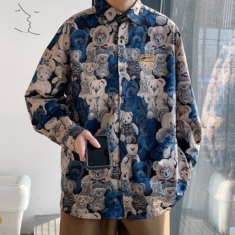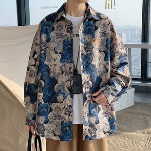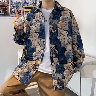休闲翻领衬衣潮牌百搭工装 灯芯绒长袖 高街美式 外套男秋季 夹克 衬衫