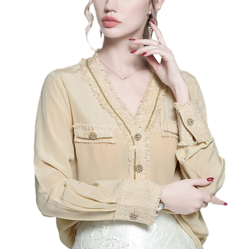 翻领上衣OL桑蚕丝衬衣 2025秋气质中长款 30姆米重磅真丝衬衫 女长袖
