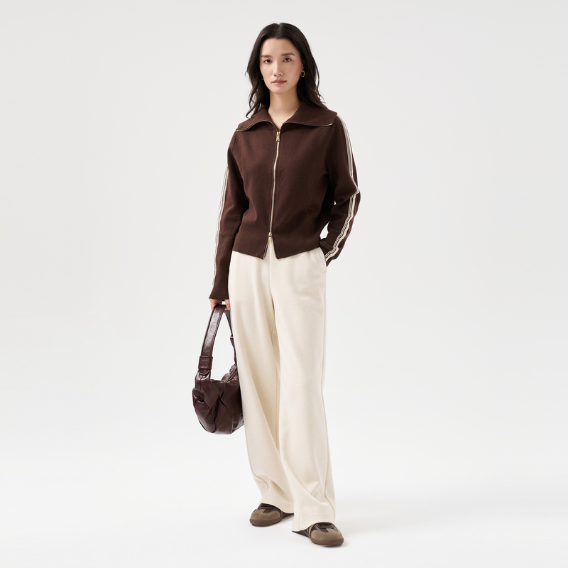 新款 女运动风休闲收腰针织衫 短款 毛织开衫 大翻领拉链短款 OTT冬季