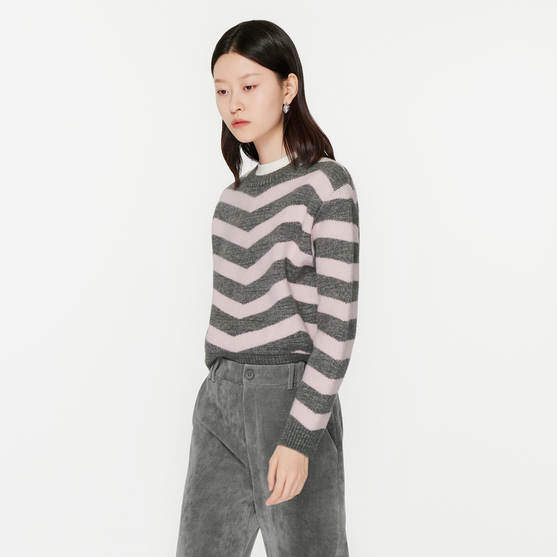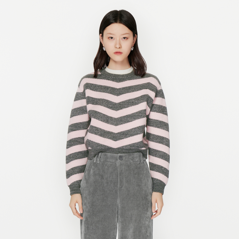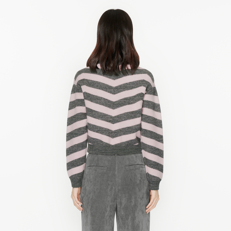 羊毛混纺polo领宽松条纹撞色毛衣FDFW0502K 新品 440ME女装 25秋季